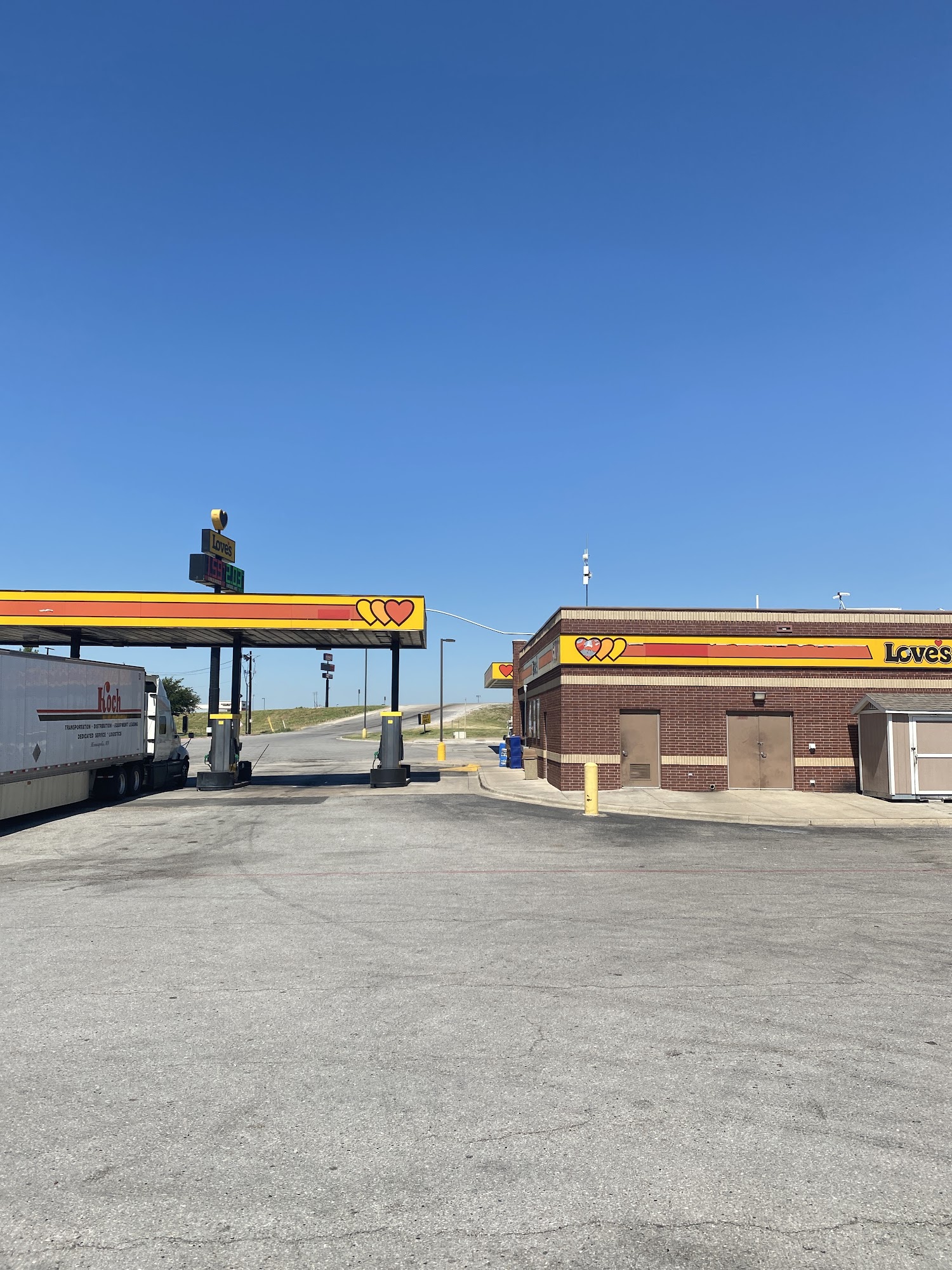 Conveniently located on US-75, this Love's Travel Stop provides diesel fuel, gas, food, and supplies. The store is modern and stocked, though on the smallish side with not much truck parking. The restrooms are outstanding, clean and tidy, and smell very good. The staff receives the highest praise for being genuinely nice, friendly, helpful, and knowledgeable, offering the best greeting. The coffee is fresh and hot, and the coolers are full with a great selection. While water pressure could be better, there are ample plugs for use. It features a 24-hour Carl's Jr. and has many other options within walking distance, making it a super go-to spot and definitely worth stopping.