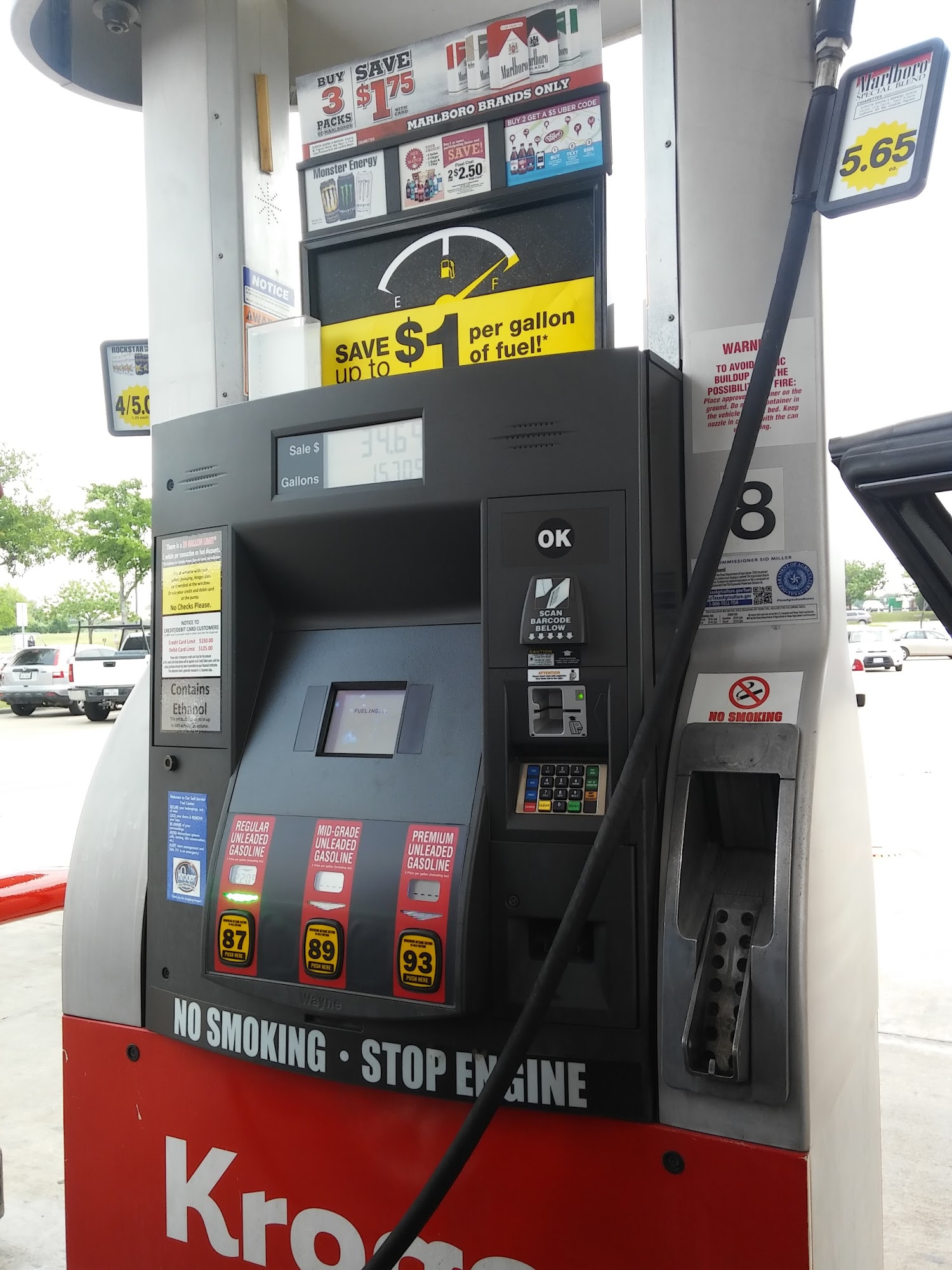 Kroger Fuel Center is a decent and busy fuel center. It is a great place to get gas, offering great value when using fuel points from buying groceries and filling prescriptions to get discounts on gasoline prices. The location is convenient. The pharmacy is noted for being quick and having friendly staff. It also serves as a grocery store, though the self check-out kiosks are limited, which can lead to long lines. Overall, it is a pretty decent Kroger with everything it needs.