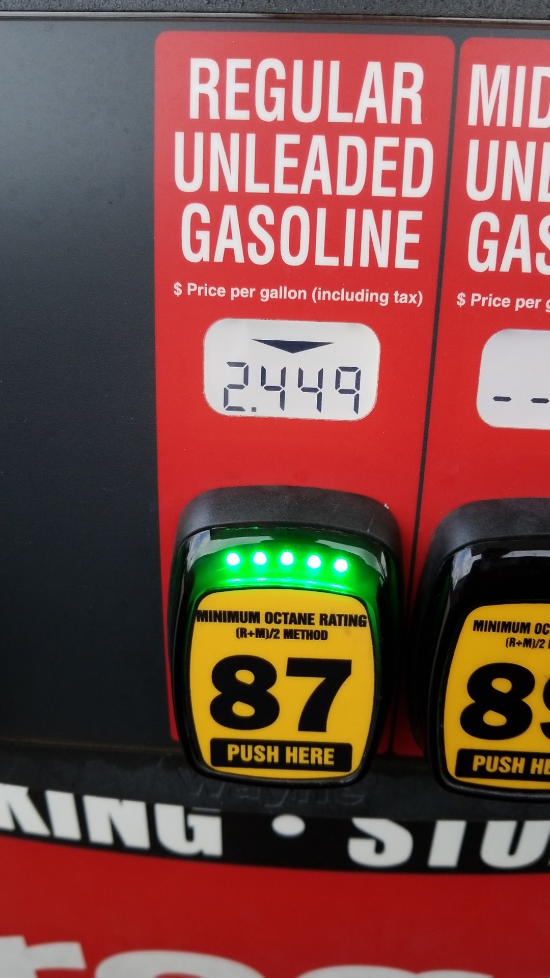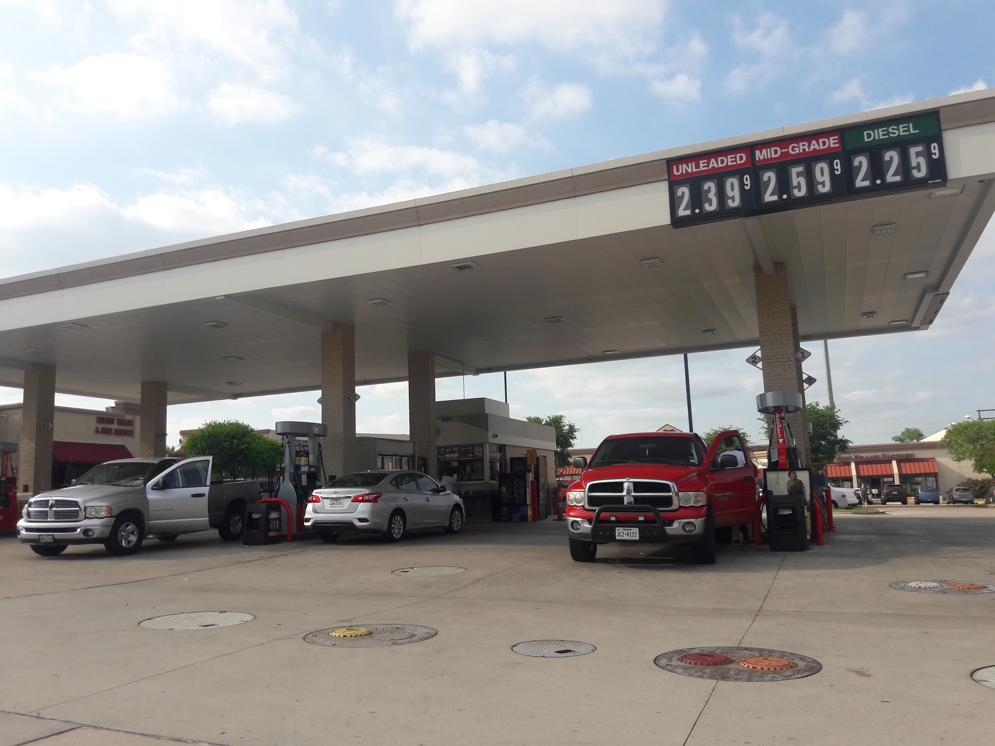 Discounts with fuel points from shopping at Kroger. Gas has never caused knocks. Convenient location from driving from Plano to Addison.
