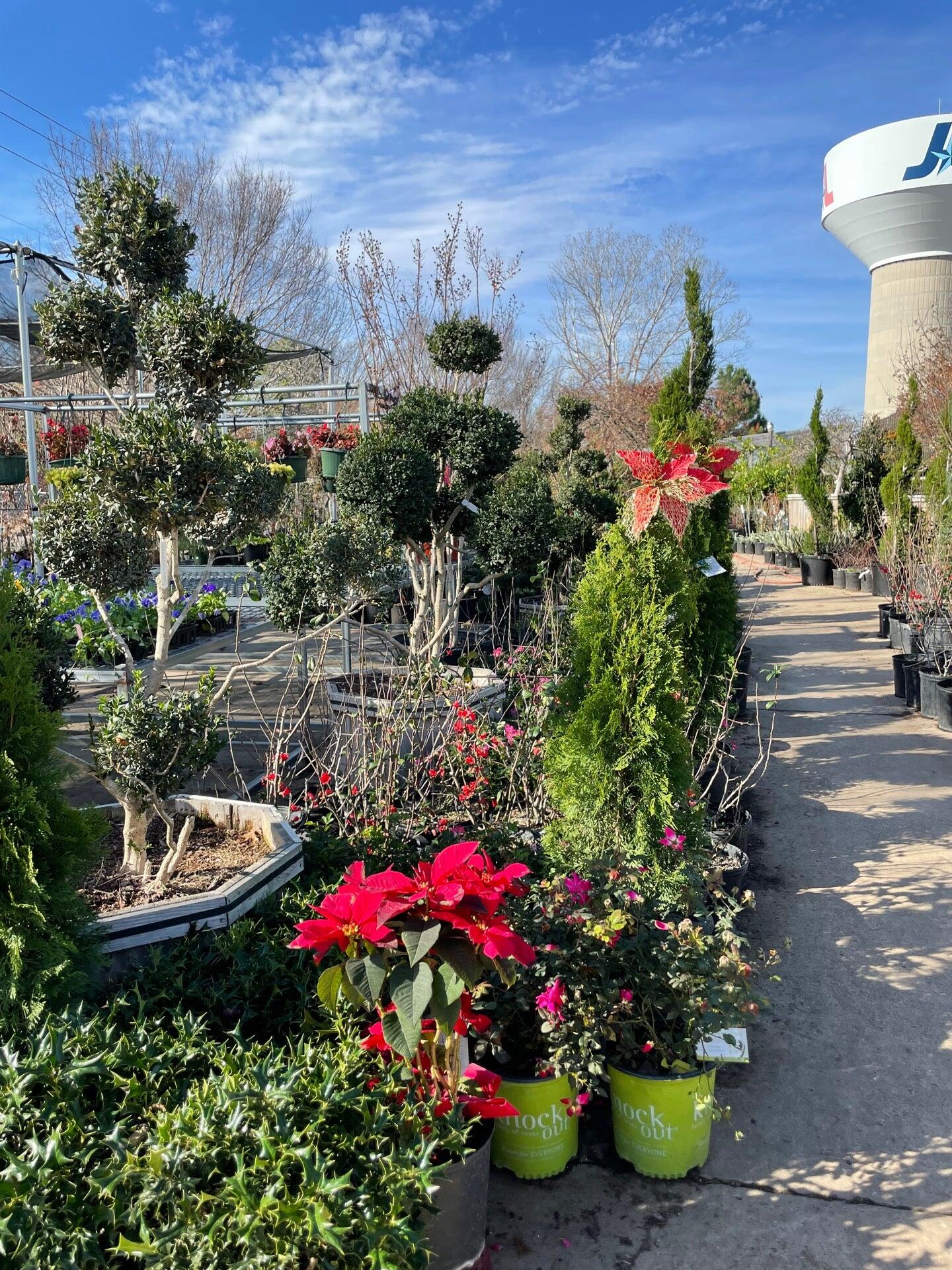 Friendliest staff best prices and beautiful tree from garden need to herbs fruits trees, of all shape sizes price ranges, pines you name it they might have it. My favorite nursery to come visit in DFW