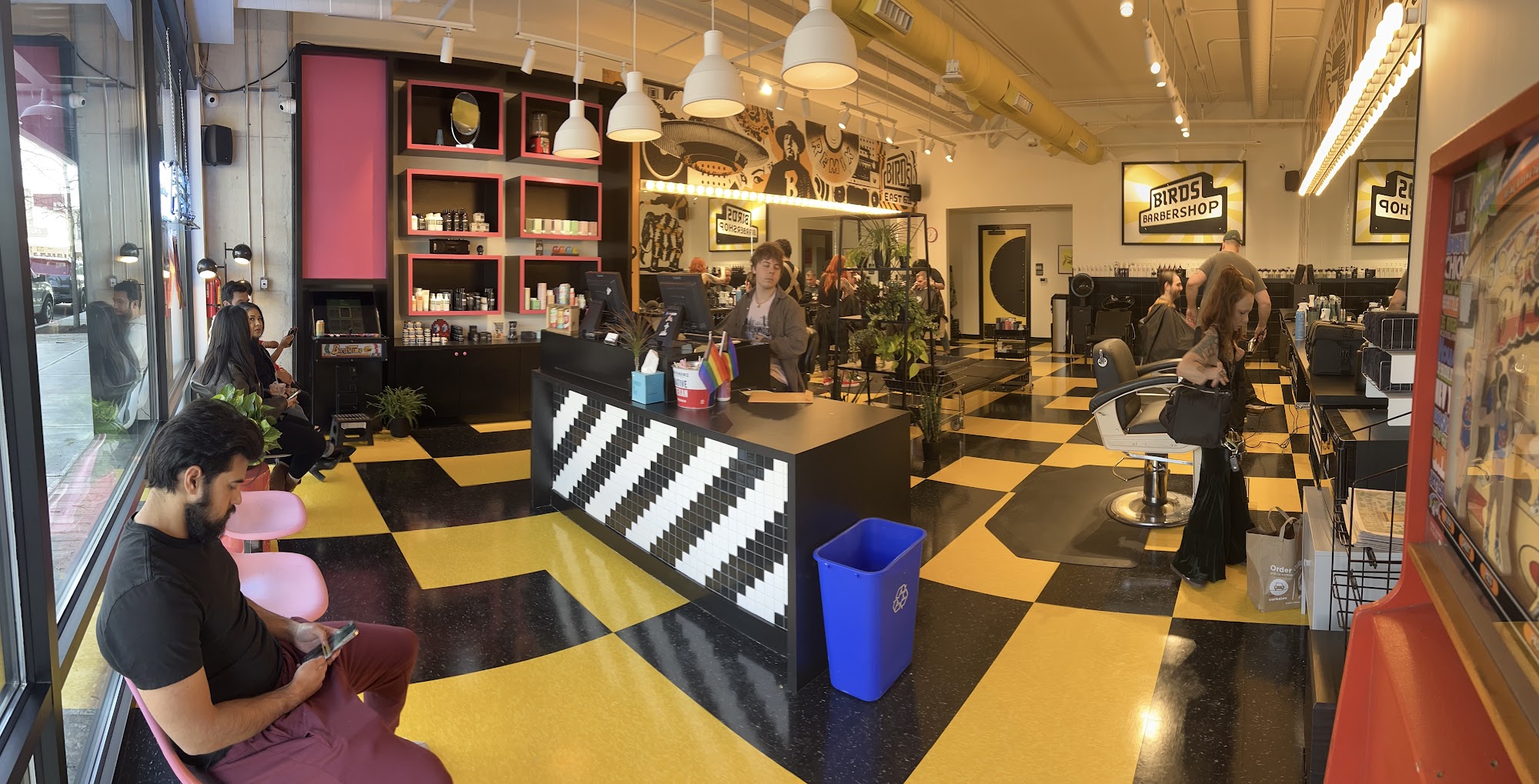 Birds Barbershop offers exceptional hair services, as noted by customers' experiences. Amber C excels in cutting curly and wavy hair, providing personalized care and helping with scalp concerns. Her product recommendations are highly regarded. Jamie demonstrates expertise in hair coloring, delivering first-class service and a high-gloss finish. The welcoming atmosphere, with staff like Angie offering beers, enhances the positive experience at Birds Barbershop.