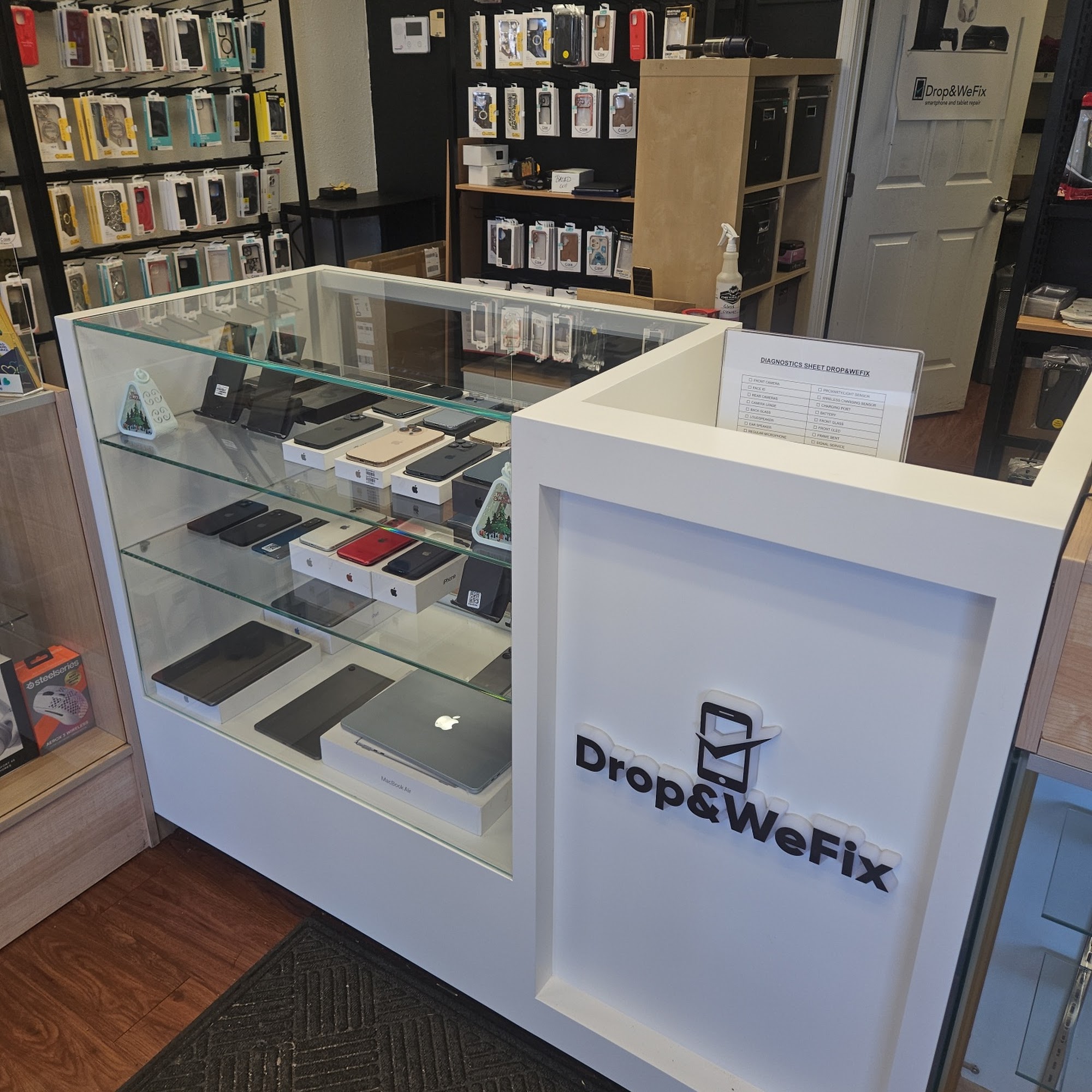 Drop&WeFix Cell Phone Repair Specialists offers fast and excellent service for phones, tablets, and computers. They repair screens, batteries, charging ports, water damage, and many other issues, including data recovery. The service is highly recommended, with quick fixes often completed the same day. They test devices thoroughly and provide good prices. The store also sells many accessories and cases. Staff are described as very nice, professional, and thorough, ensuring devices are clean inside. Customers report an outstanding job done every time.