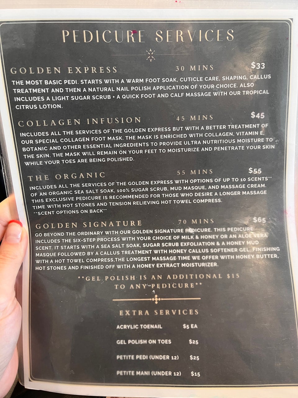 Golden Nails Salon & Spa is a reliable spot for a great pedicure and nail care experience. With skilled nail technicians, customers appreciate the thorough and gentle attention they receive during their visits. The friendly front desk staff contributes to the welcoming atmosphere, making clients feel comfortable. The salon is always clean, and while some have noted that prices can be a bit higher than expected, many find them comparable to others in the industry. Golden Nails offers a variety of services, including pedicures, manicures, and gel/dipping powder nails, making it a top choice for many. Customers often express their satisfaction with the results, highlighting the quality of work and care provided by the staff. Customers have praised the work of nail technicians like Susa, who made sure their nails looked perfect and natural, and Mickey, who helped them choose the perfect shades for their gel manicure. The salon also received positive reviews for its relaxing atmosphere and easy walk-in policy.