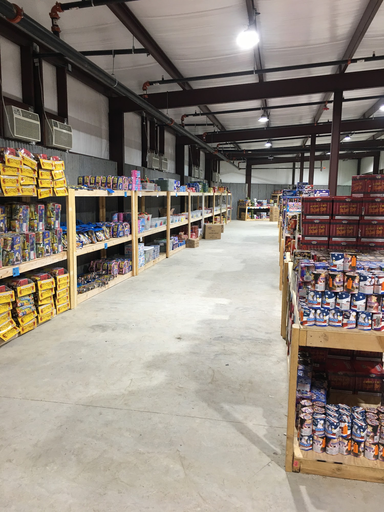 Google says it’s “temporarily closed” but it is definitely OPEN!HUGE warehouse! This is the place to go for your fireworks…small family or big party! People running it are amazingly helpful and kind!!