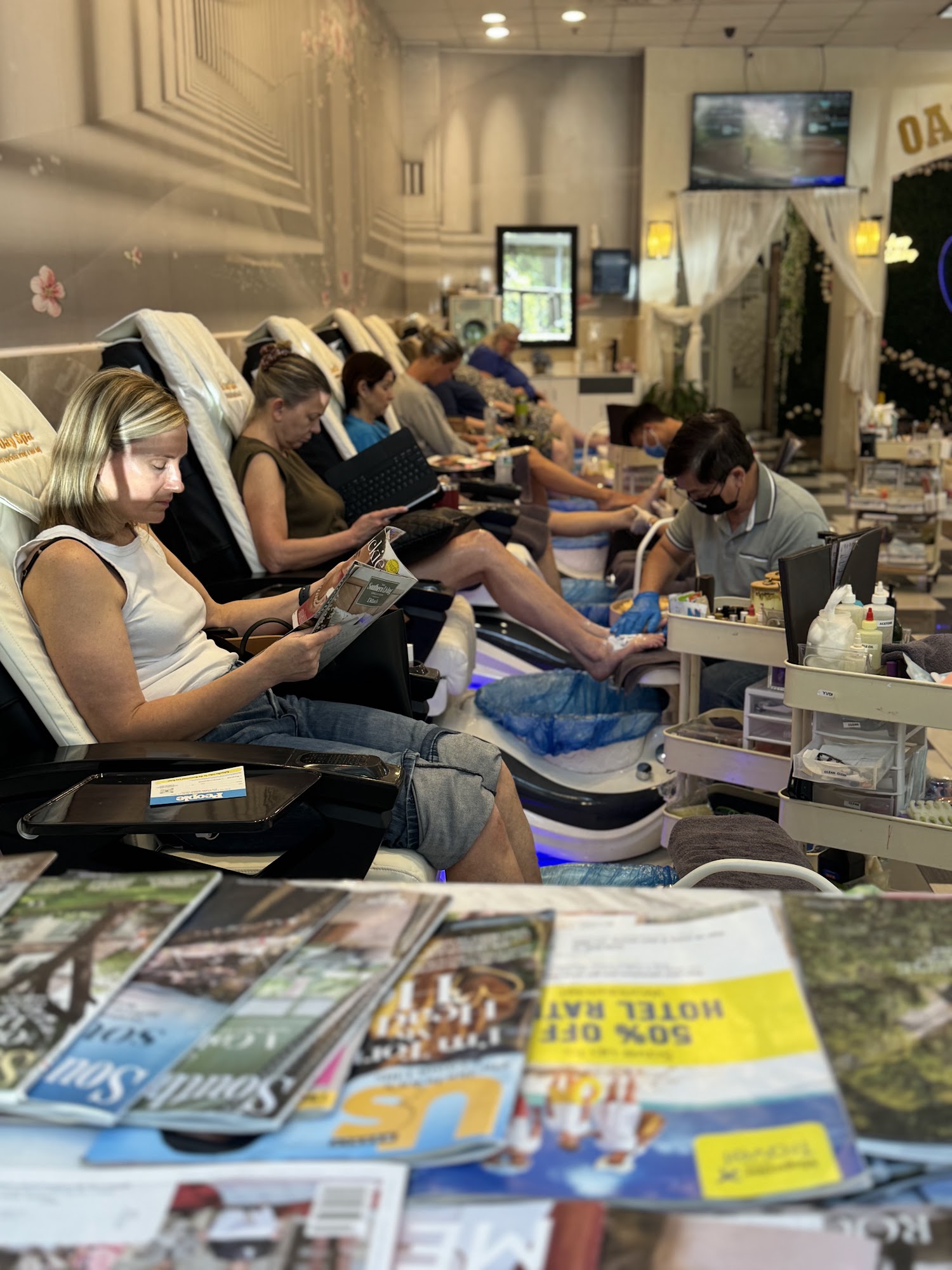 Oasis Day Spa & Nails offers nail services with varying experiences. The spa provides a relaxing and refreshing atmosphere, with careful and patient technicians. Many customers have enjoyed their visits, praising the skilled work that results in beautiful nails. The staff is very friendly, knowledgeable, and talented, going above and beyond to take care of you. Many describe a luxurious, high quality experience and recommend their services, including SNS fingernails and Shellac on toes. The spa is very clean and manages appointments and walk-ins very well. However, there have been instances of overcrowding and understaffing, leading to rushed services and inconsistencies in service quality.