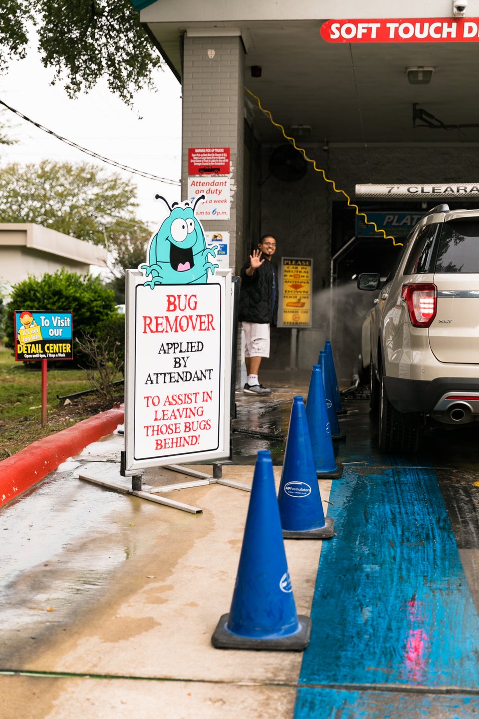 After a muddy trip to Colorado, I came to get my car washed and the guys here hand sprayed the mud off and ran me through the car wash a second time at no extra charge to make sure I left with a perfectly clean vehicle. This car wash is always fast and friendly so I never wash my car anywhere else.