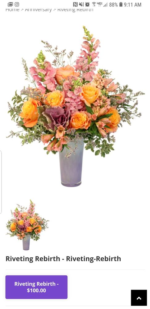 My wife received a beautifully crafted floral arrangement for Mother's Day!! Far exceeded any expectations! Just Lovely! Thank you so much!!!
