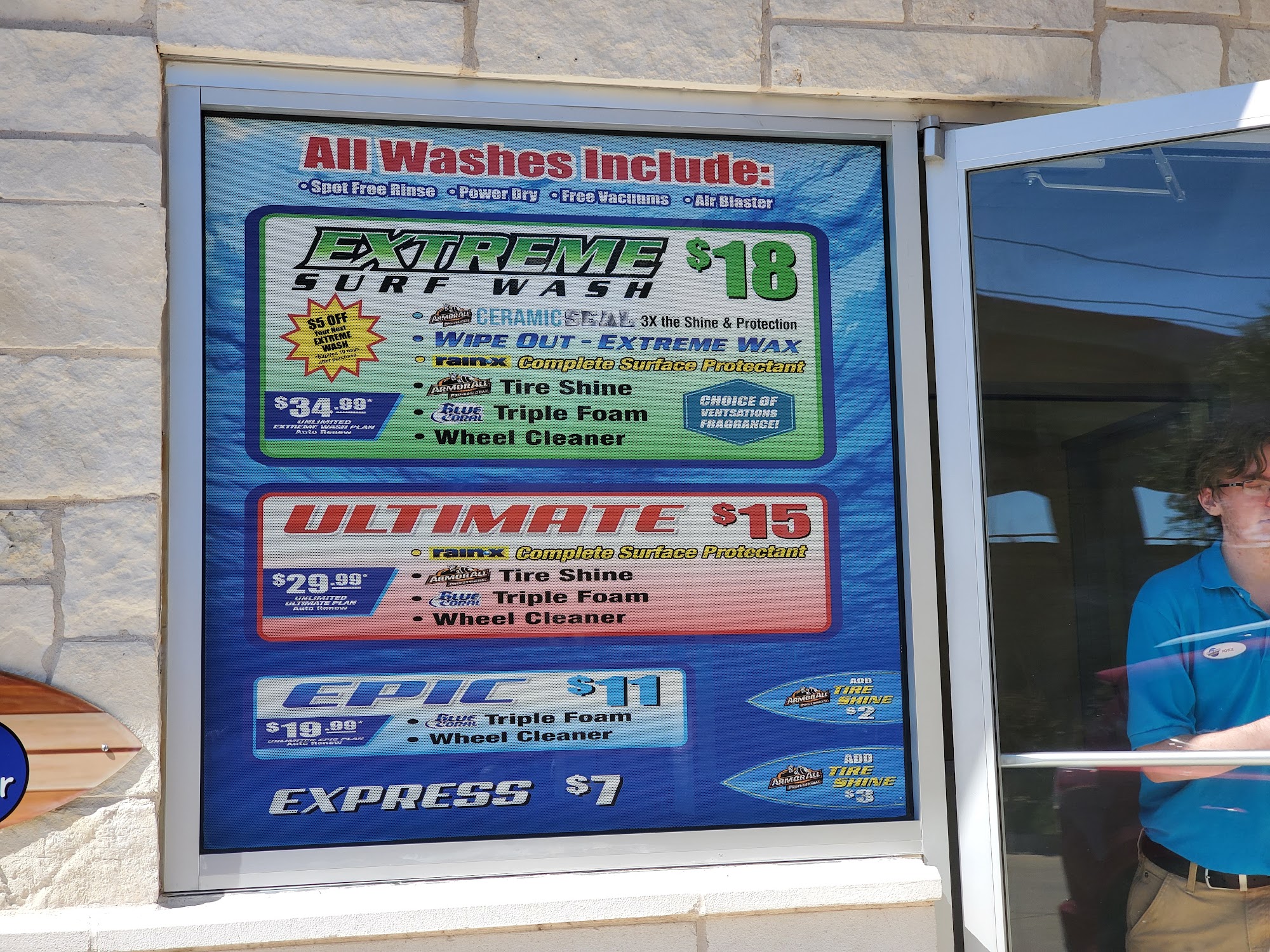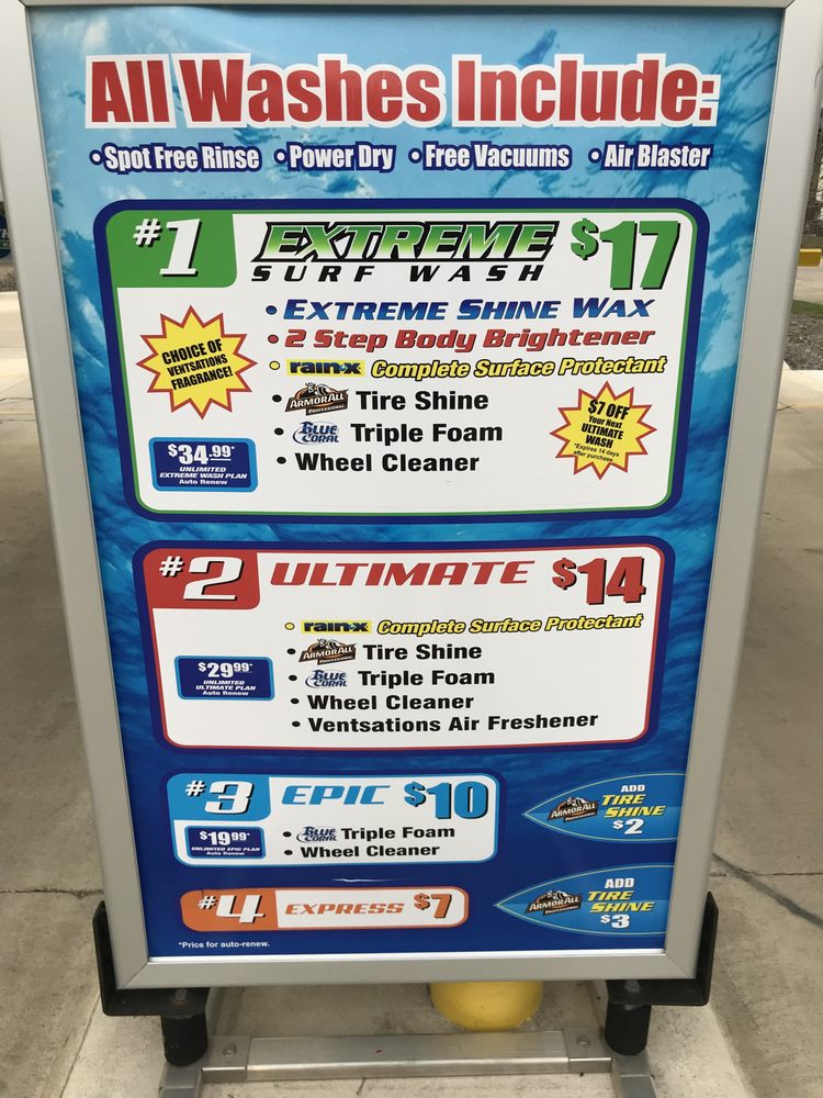 Surf Thru Express Car Wash is an eco-friendly, high-end express car wash that provides a thorough clean and shiny finish in under 5 minutes. They use premium products like Rain-X, Blue Coral Triple Foam, and Wipe-Out Conditioner to protect vehicles against weather conditions. The business offers various pricing packages, including monthly unlimited washes, pre-purchase specials, and share cards. Customers can enjoy free vacuums, air blowers, and dash wipes. Special offers are advertised at each location. Reviewers praise the friendly and efficient staff, the thorough wash, and the convenient free amenities. However, some note issues with the ineffective microfiber towels provided and the policy of requiring separate memberships for multiple vehicles. Overall, Surf Thru Express Car Wash is a reliable, reasonably-priced option for a quick and effective car cleaning experience, though there is room for improvement in certain areas.