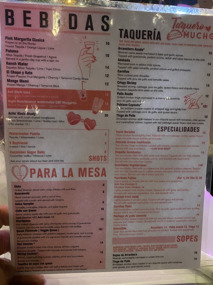 Taquero Mucho is a charming restaurant that offers a delightful dining experience. The food is consistently praised, with highlights like chips and queso, French toast, and margarita flights. Diners have also enjoyed the Michelada, shrimp ceviche, Quesa birria, and chilaquiles. The restaurant's vibrant, pink-hued atmosphere creates a fun and lively ambiance, perfect for hanging out with friends or enjoying time alone. The decor is unique and Instagram-worthy, adding to the cheerful environment. The service has greatly improved, with many noting the friendly and accommodating staff. Customers have enjoyed the beef tacos, which are nicely seasoned and flavorful, along with spicy sauce that adds a kick. The margaritas, especially the mango on the rocks and guava drinks, are strong and tasty. The lively atmosphere is complemented by fun music from the DJ, making it a great spot for happy hour or celebrating special occasions. While it can get crowded and loud, making conversation a bit difficult, the overall experience remains enjoyable. Despite some suggestions that the tortillas could be a bit stronger or more support, Taquero Mucho continues to be a popular destination for delicious food and a fun, vibrant setting.