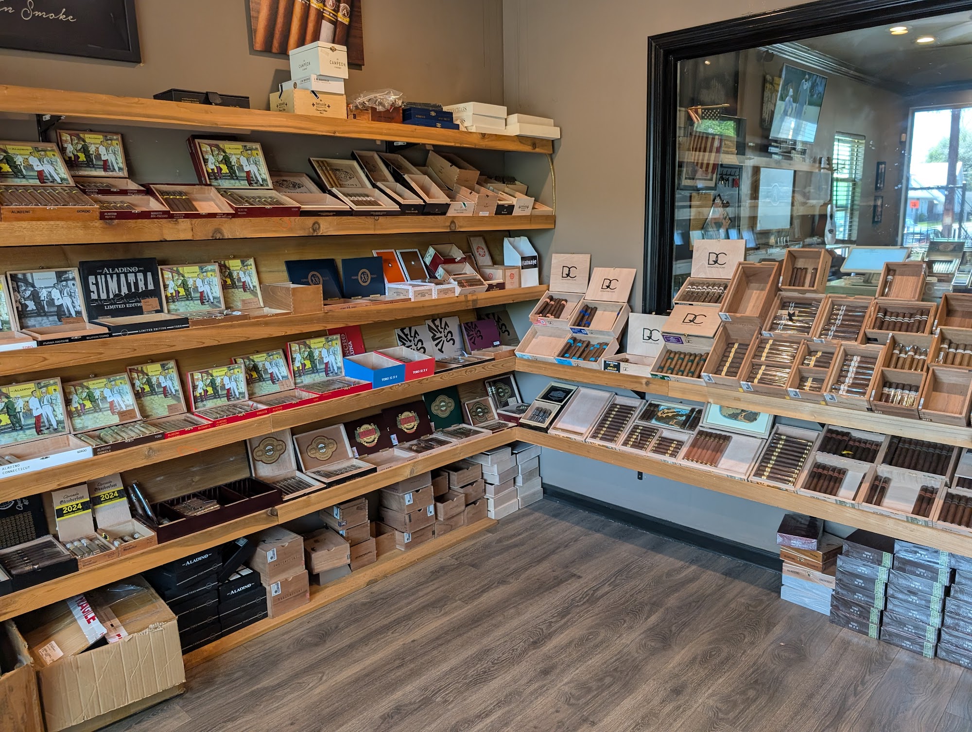 Place has a lot of boutique cigar lines but I really enjoyed a mix of sticks I picked up. They have a comfortable lounge and outdoor seating. Staff was knowledgeable about the different brands and helped me make a selection. Prices are great and the smokes were fantastic.