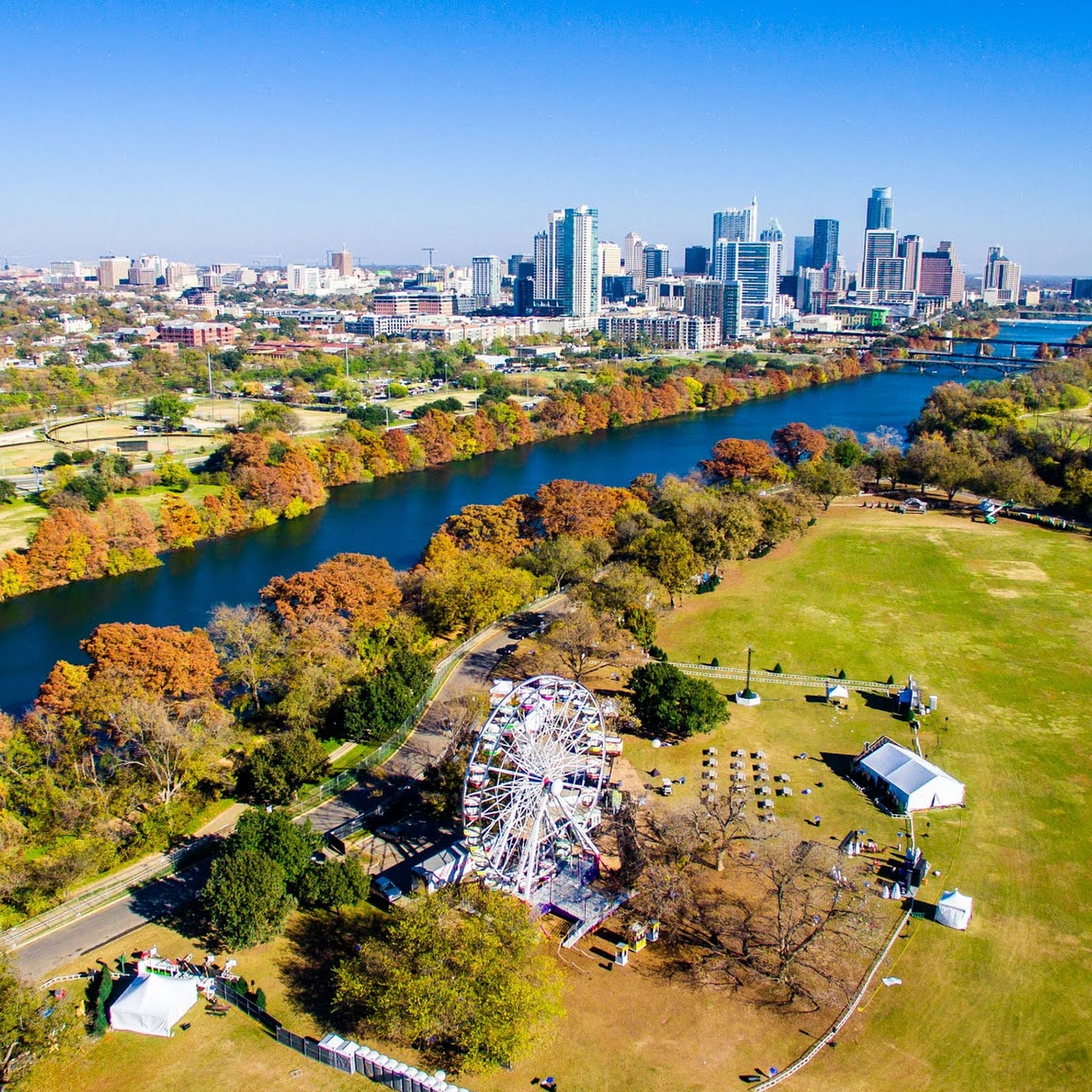 Zilker Park is a large beautiful park just across the Colorado River from downtown Austin. There is a very nice hike and bike trail. There are workout stations, easy access to many local shops and eateries and a great place to relax and people watch.