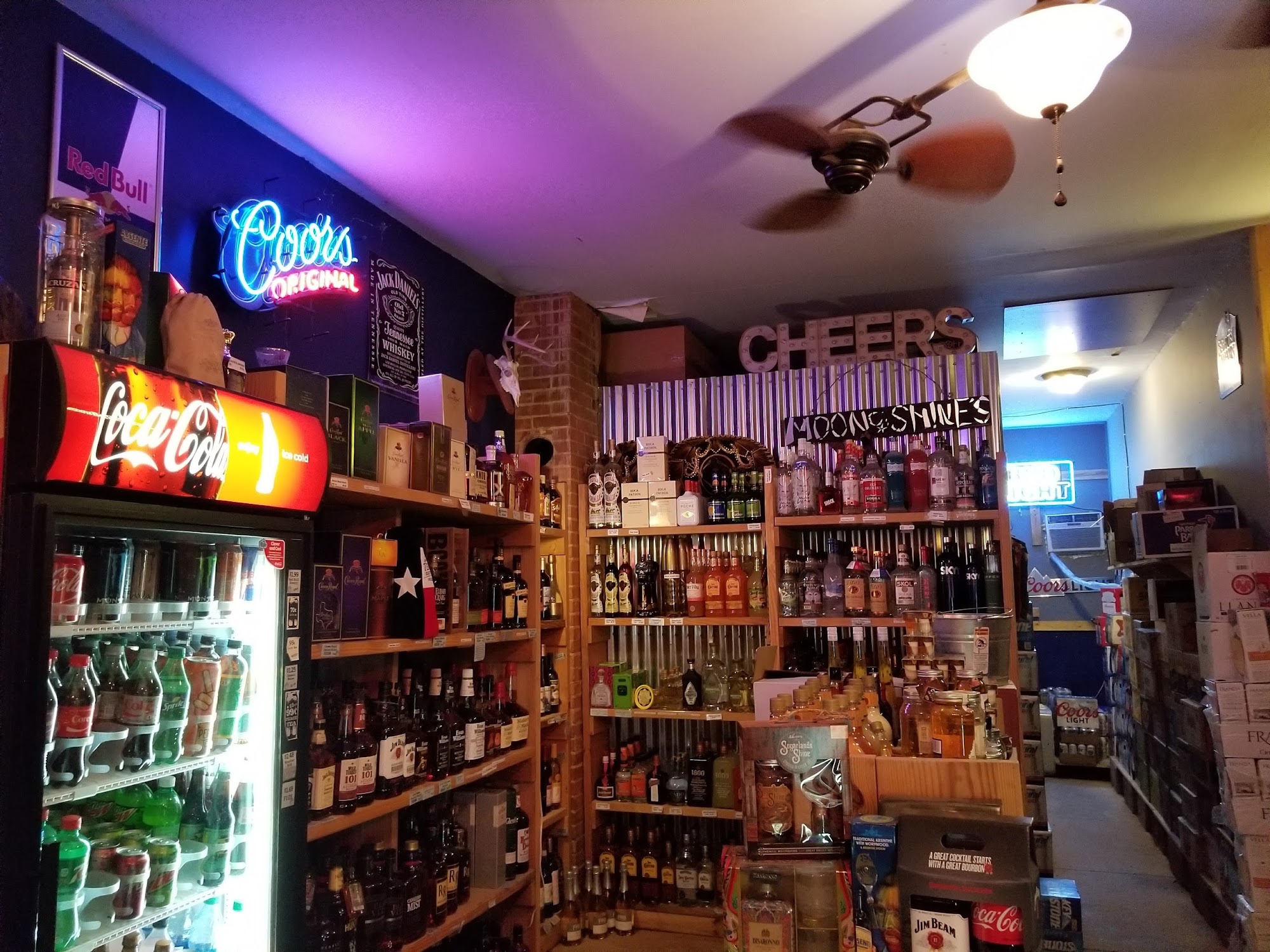 Moonshine's is a friendly, family-oriented store that offers a well-stocked selection of liquor, beer, sodas, cigs, and chocolate. The staff are helpful and kind, always ready to assist and provide good recommendations. Customers appreciate the great prices and the welcoming atmosphere, with staff sharing tips about local places to eat, stay, and visit nearby. Overall, a convenient and pleasant shopping experience.