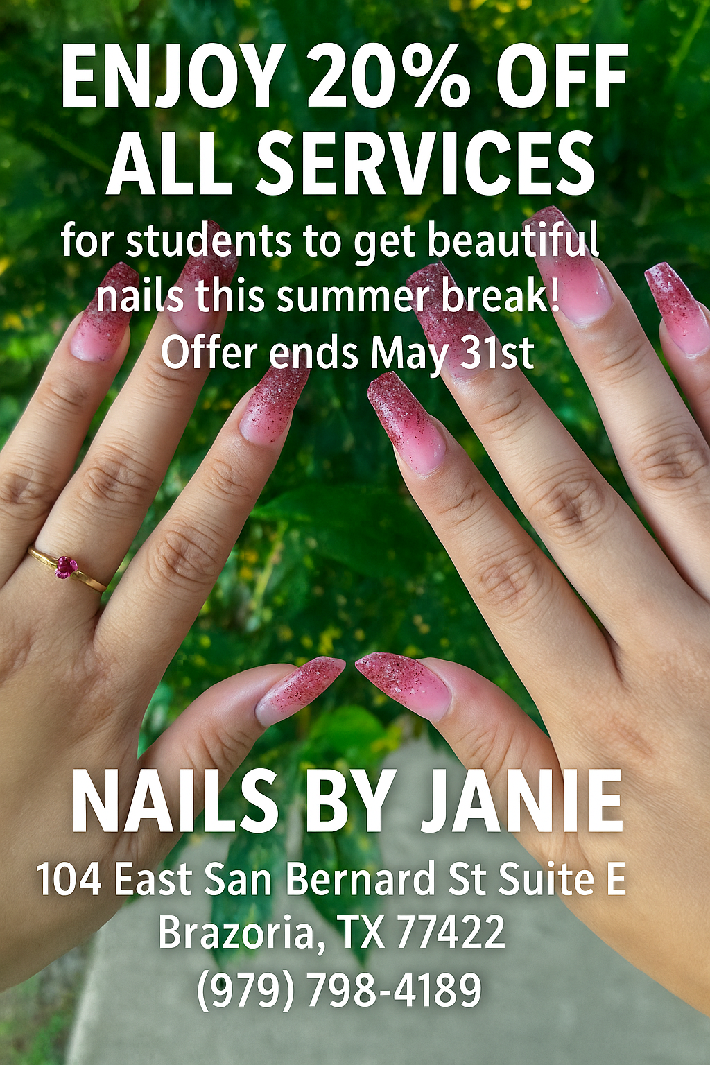 Nails By Janie is a friendly and professional salon where customers feel relaxed and pampered. The staff take their time to ensure they exceed expectations, making sure clients get exactly what they want without feeling rushed. They offer quality services like manicures and pedicures, and are known for their great work and welcoming atmosphere. Many customers highly recommend and plan to return regularly.
