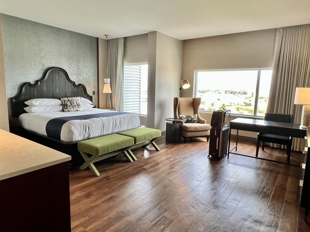 Staff was extremely friendly and courteous. Room was clean, as well as the hotel. Gorgeous pool. Live music at the bar, one of three. Food was good. Highly recommended.