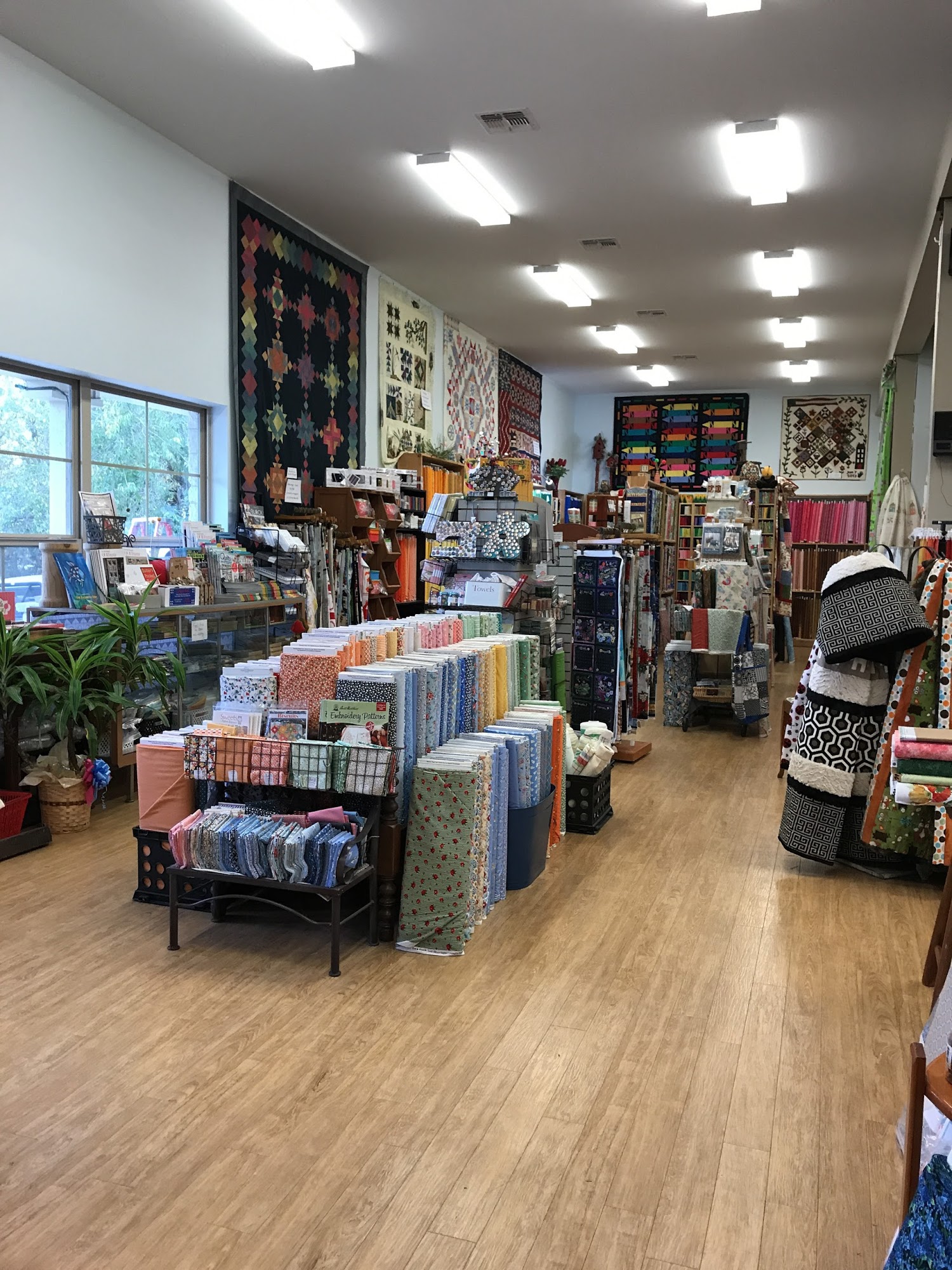 B & B Quilting is a local Buda, Texas business that carries supplies for making quilts, with over 5,000 bolts of 100% cotton fabric and patterns, books, rulers, and everything a quilter needs. The shop specializes in 1800's reproductions, batiks, 1930's, and many other types of fabrics, including floral designs, stately or muted tones, plaids, and seasonal selections. The fabric selection is wonderful, loaded with all sorts of great prints not seen elsewhere, with an ample selection of colors and more exciting fabrics. The little place is much more intimate and less distracting than a big box store. It is very well organized, featuring old school furniture like old Singers and repurposed letter cubbies filled with free inspirational postcards. There is a space in the back with a large table for various lessons and classes, and a restroom is available for customers. Everyone is so friendly and lovely. The employees and owners are welcoming and perfectly happy to let you browse but are only a request away if you need help. Customers love that they can hold fabrics together to assure matching colors and texture, noting there is nothing like it. Visitors find it an excellent little shop, a new favorite place, and are very impressed, vowing to support it and return.