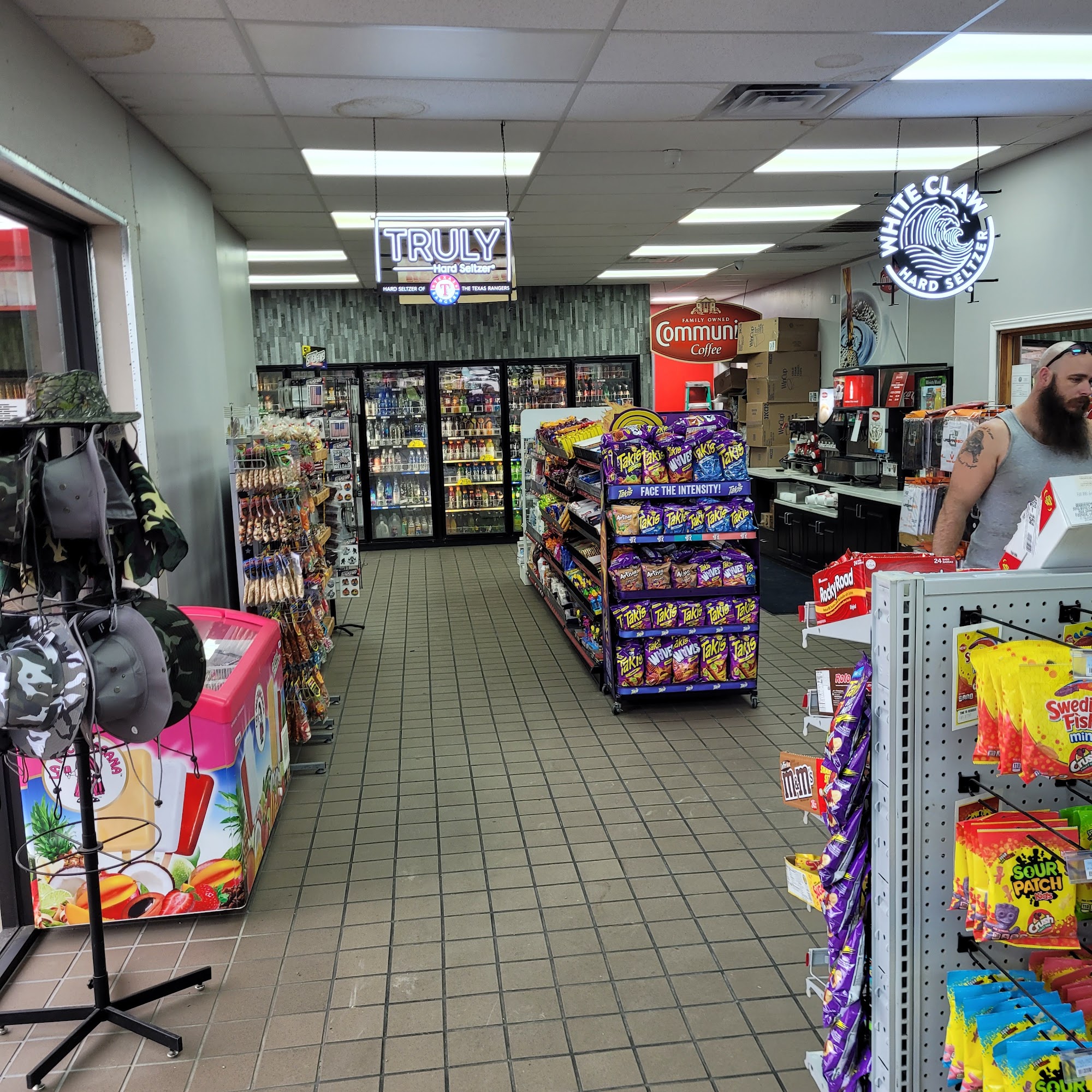 Chevron is a decent and clean spot for a break and a snack while on a trip. It is a decent space for truckers, with many using this location as it's very convenient to the interstate. Parking is available, with a fee for overnight stays. The restrooms are great and clean. The place is well stocked with many products and a huge selection of drinks, including glass bottle cokes. It features a restaurant inside that is pretty good, offering decent portions, good Mexican food, and pre-made sandwiches for a quick grab-and-go option. The people are really friendly. Getting back on the highway takes a second but is not a huge deal.