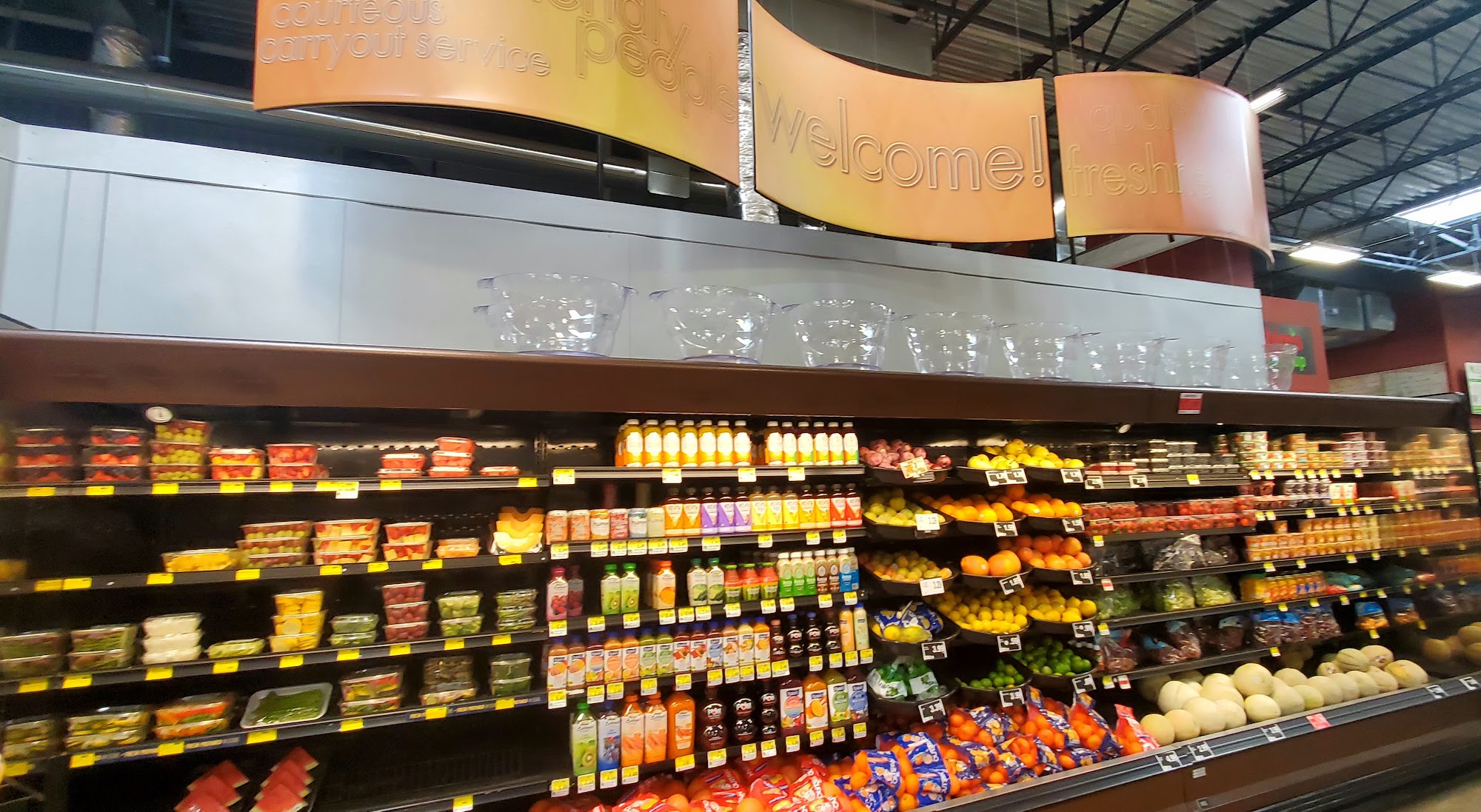 Friendly, helpful people.Clean well stocked shelves this is MY GO TO.Having someone to carry my groceries out every time is a big help to me.Love this store and their FIRST RATE EMPLOYEES.