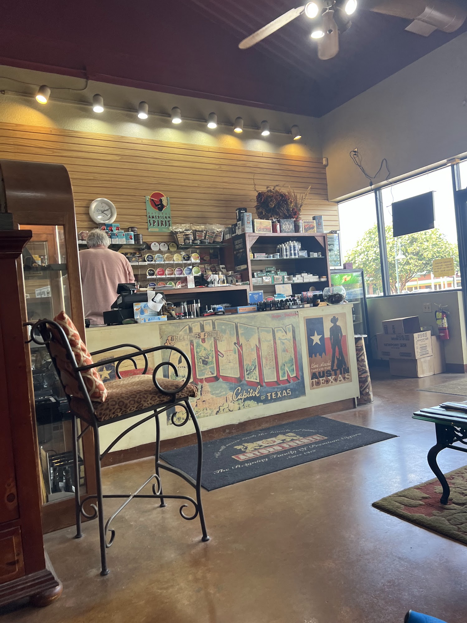 Retail cigar store, with walk in humidor and smoking lounge area.