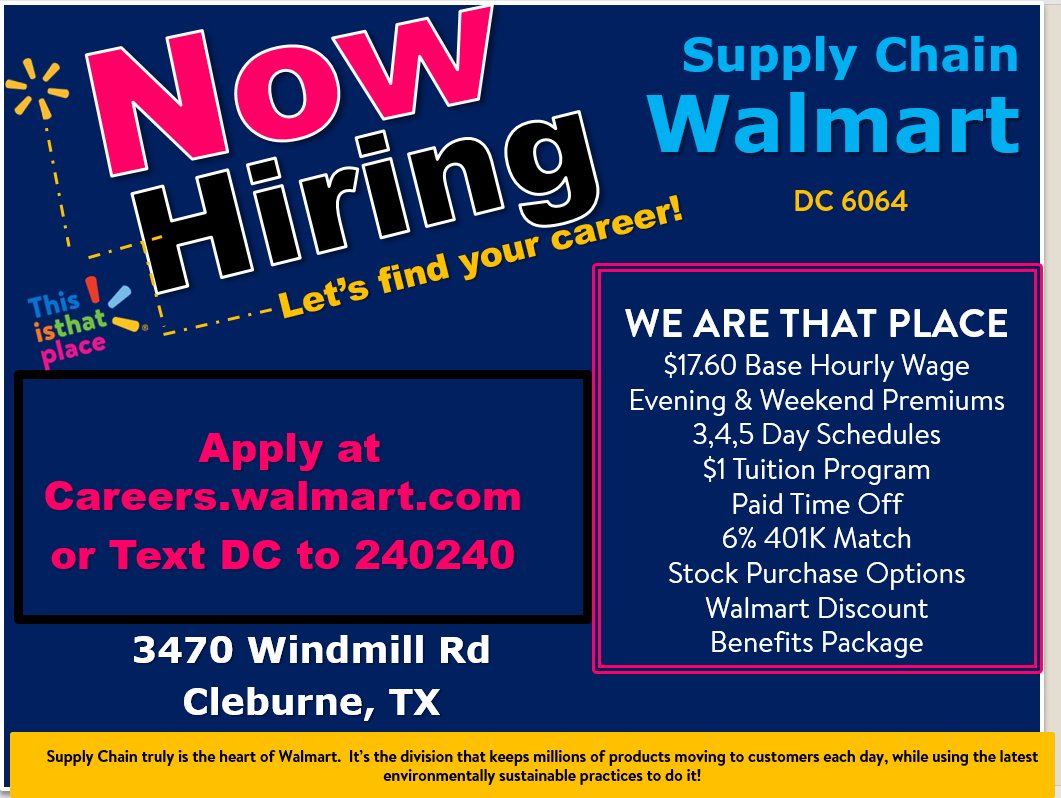 Cleburne Walmart DC, I love you good people.