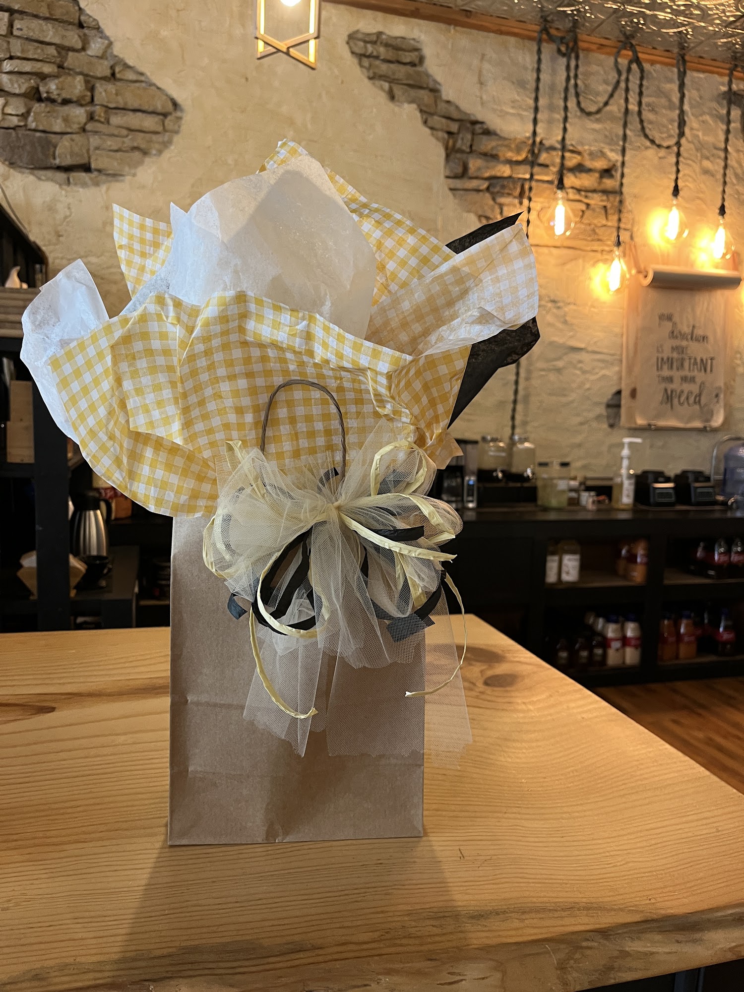 Such a nice atmosphere, adorable store displays, the coffee was delicious! I bought some chocolates as gifts and the barista made these gorgeous bows for the gift bags and stuffed them with this nice tissue paper, it really elevated the gifting experience!