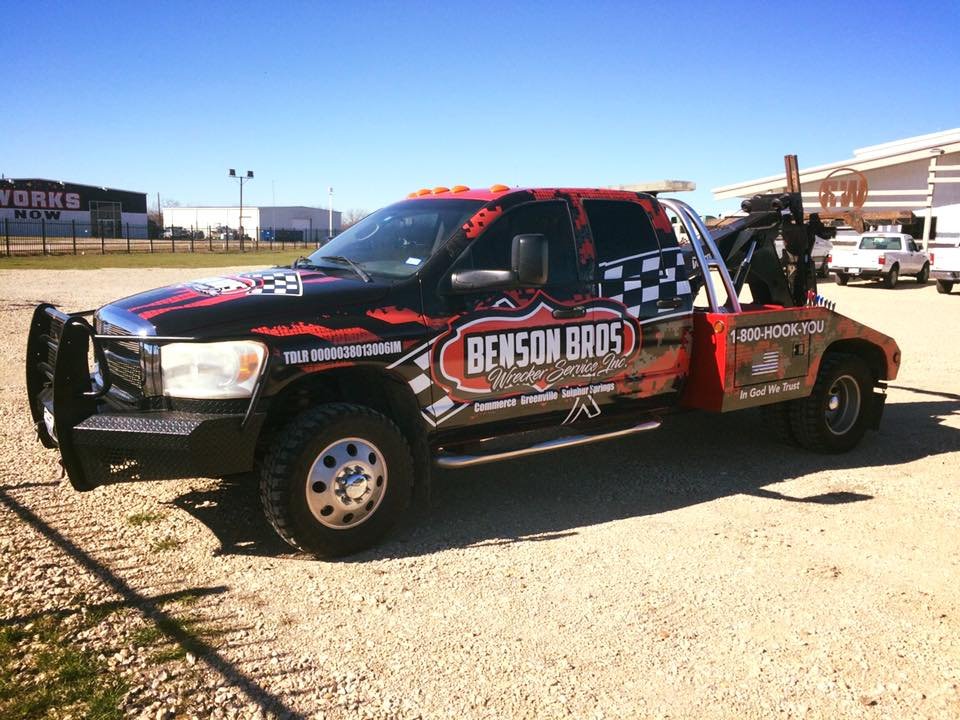 Benson Bros. Is the proven, #1 choice for towing needs in all of Northeast Texas. Family owned and operated, covering over 75 miles of Interstate 30 daily. Locations in Sulphur Springs, Greenville, and Commerce supplying all size towing & roadside assistance. If you need a tow & want the pros, call Benson Bros!