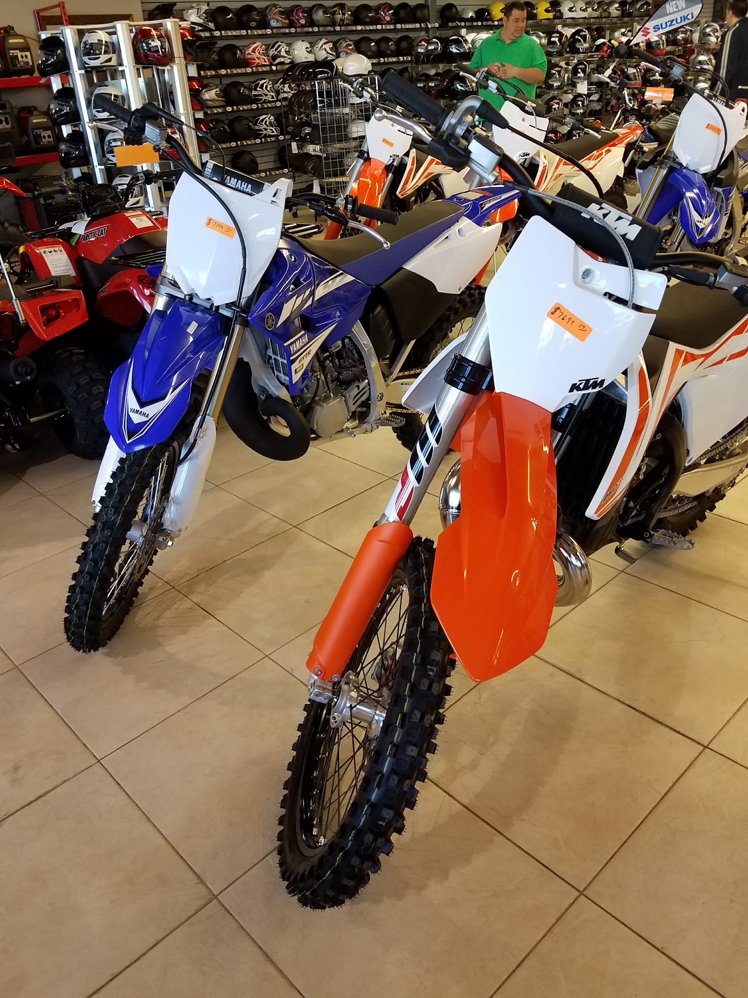 KTM..Honda..Yamaha..and Suzuki motorcycles under one roof..excellent parts department..ask for Steve or Tim..very knowledgable..wheelchair ramp and all types of bikes..street..dirt..trails..riding gear..tools and riding accessories..as well as Honda generators..ask for Keith..friendly staff..large showroom and inventory..