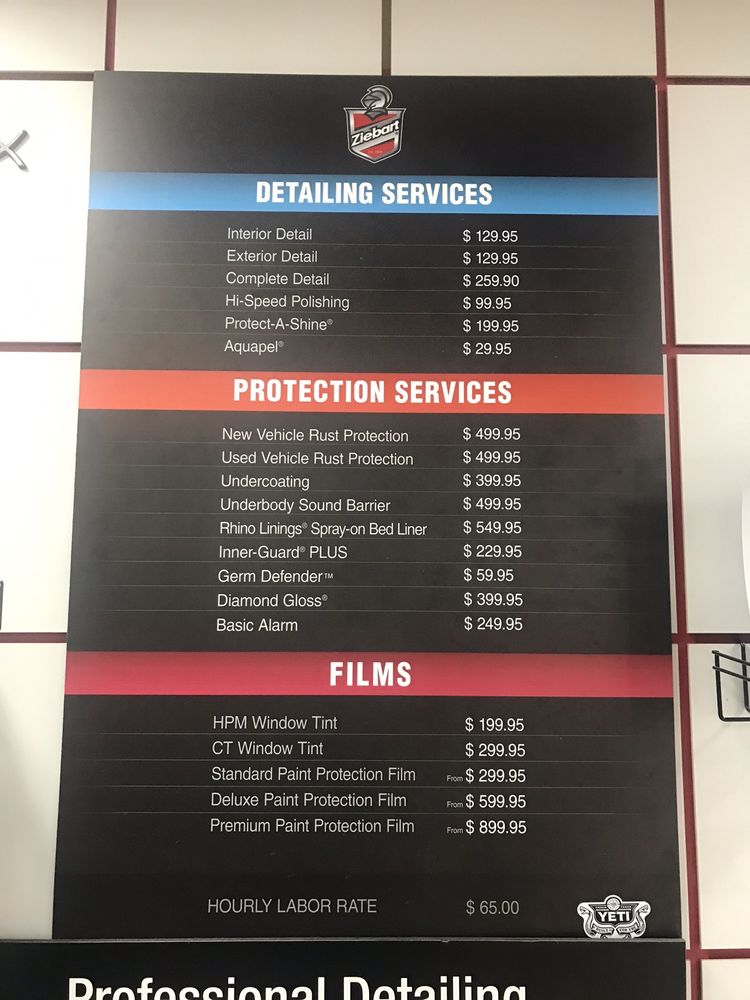 Ziebart, was efficient and does a great job. Talk to Mr Rick and he'll take care of you without any problems. Would highly recommend.
