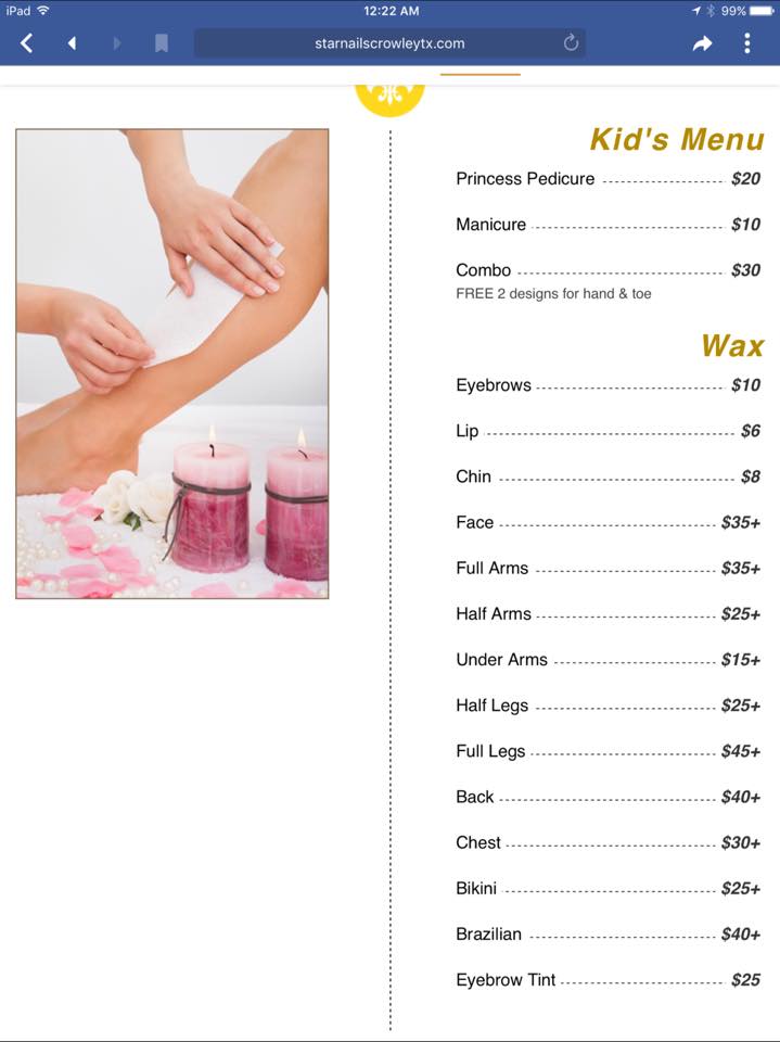 Star Nails & Spa in Crowley, TX, is a welcoming nail salon known for its outstanding customer care and skilled technicians. The staff is dedicated to providing a pleasant experience, ensuring great results with every visit. Customers appreciate the exceptional service, particularly from experienced technicians who display a friendly attitude. Many have noted the fair and reasonable pricing, with a suggestion to pay in cash or via Zelle to avoid card fees. The atmosphere is refreshing and the service is often described as worth the money, with some mentioning that the massage during pedicures is to die for. The salon offers a variety of services including pedicures, children’s pedicures, and manicures, making it a popular choice for families and individuals alike. Customers also highlight the cleanliness of the space, although some wish for paper towels instead of air dryers in the bathroom. Walk-ins are welcome, and the staff goes the extra mile to ensure satisfaction, even engaging with children. Overall, Star Nails & Spa continues to be a favorite for those seeking quality nail care and a friendly environment.