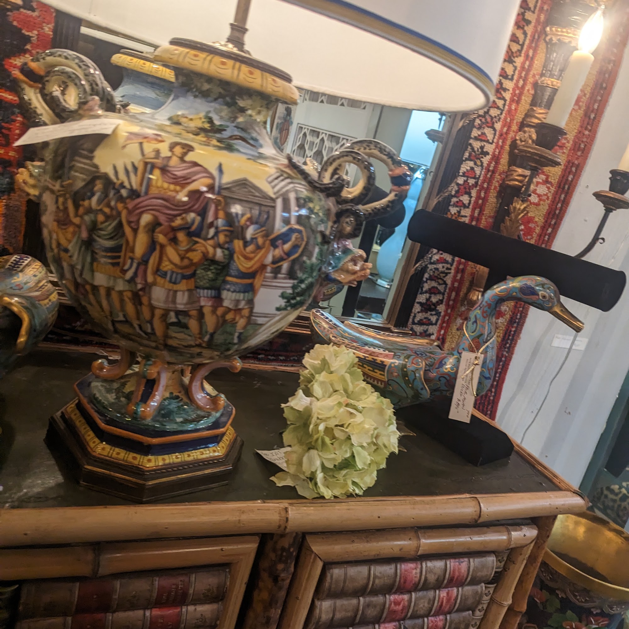 Beautiful furniture pieces and lots of art and transferware! Downside is their prices are very high compared to other antiques with comparable quality.