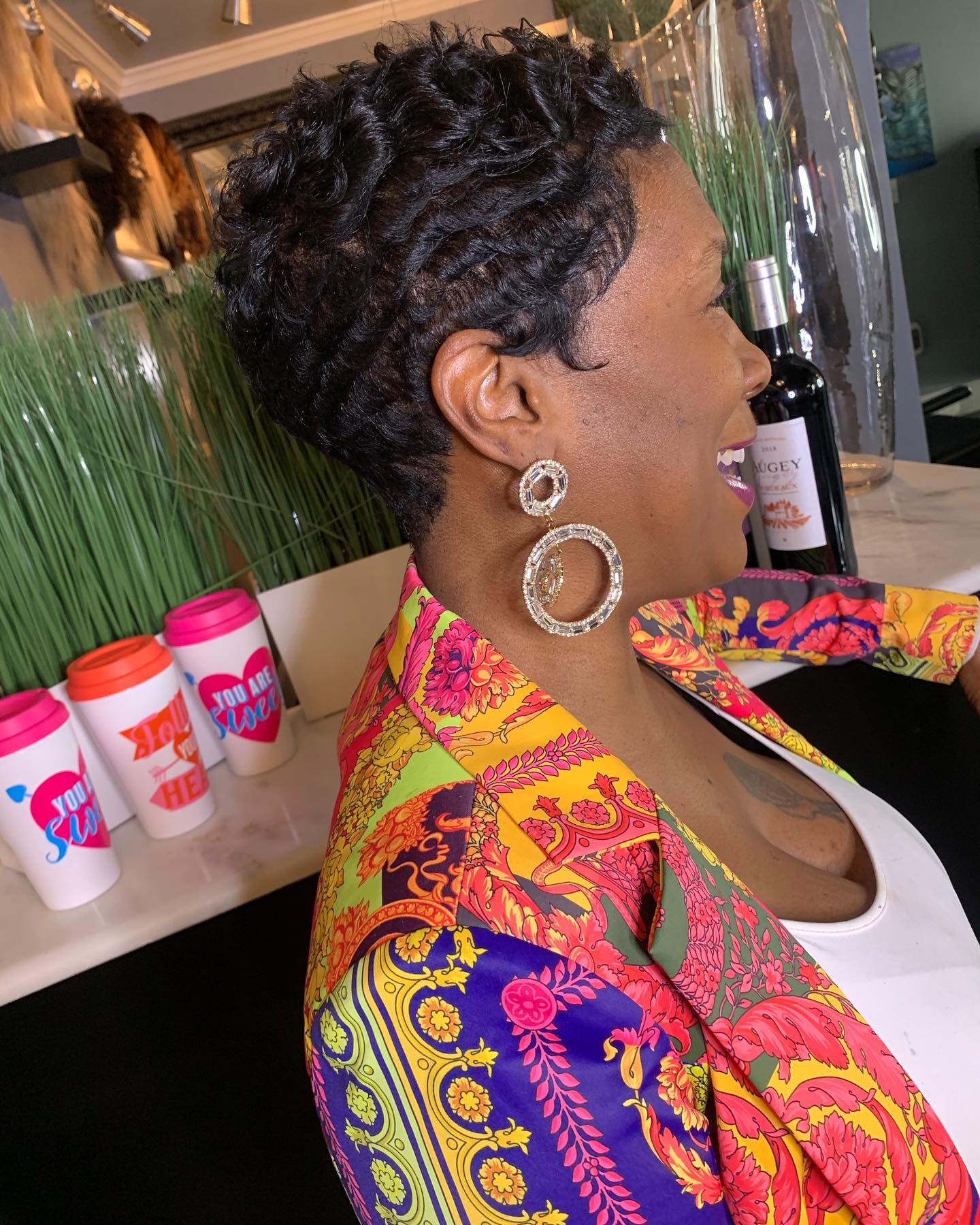 Omg! Transforming! My Mom went in for a new do, and I did the big chop, and the compliments are non-stop!!!🥰🥰 💜💜. But Most of all, Mister B. Approved🫶.