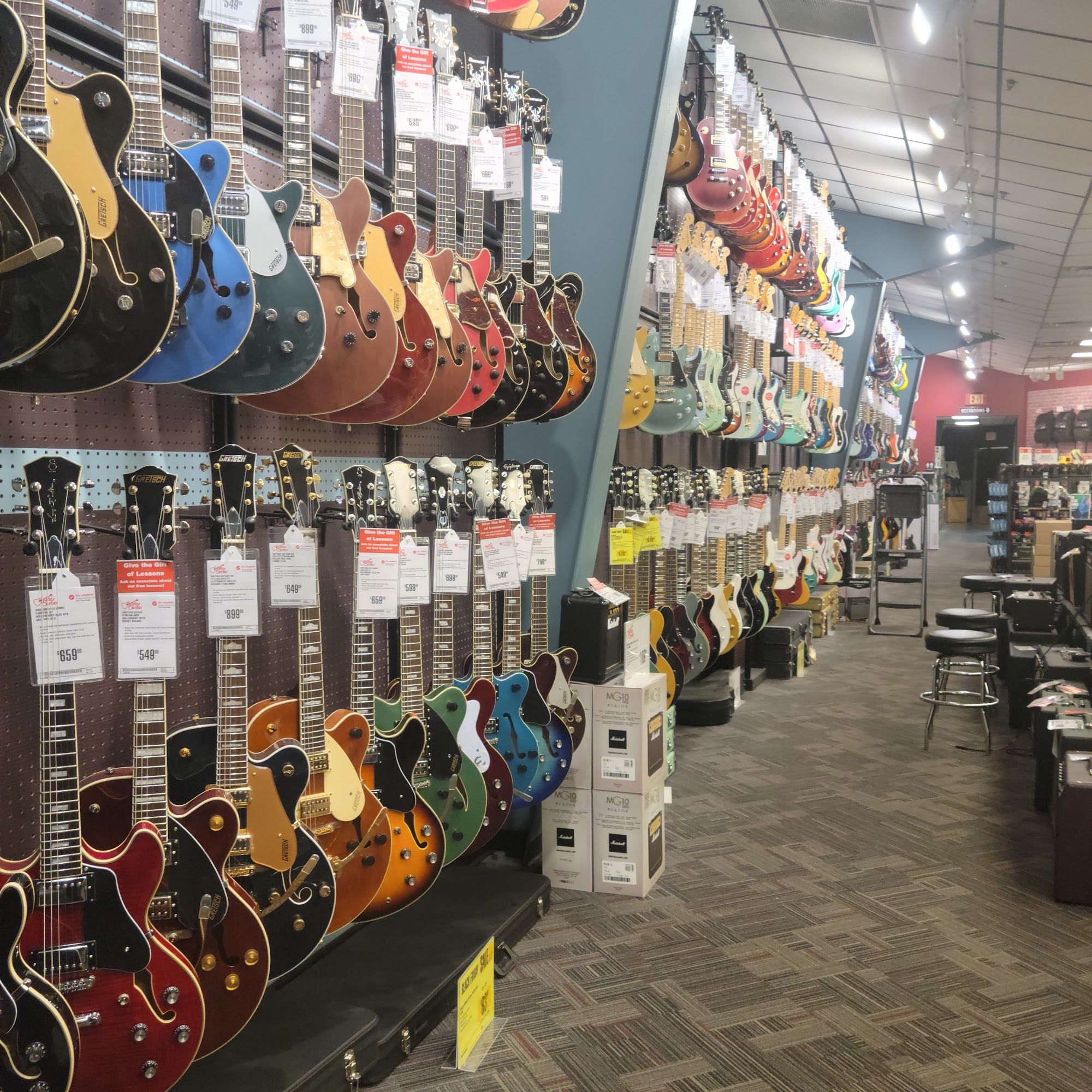 Guitar Center Dallas is a large, long-standing store offering a wide selection of brands beyond just the major names, including guitars, basses, keyboards, DJ, live sound, and recording gear, as well as used and vintage equipment. Customers find fantastic guitars and appreciate good pricing, including markdowns and rebates. The store provides lessons, instrument and equipment rentals, and expert repairs, though guitar techs for setups are sometimes unavailable. The staff and service receive consistent praise. Employees are described as doing their best, being accommodating, knowledgeable, and helpful, often sharing wisdom and tips. They are recognized for treating customers fairly and resolving issues, with specific commendation for service in the drums and lessons departments. The lessons department, in particular, is noted for its consistent quality. While the store can be busy, leading to longer waits and a need for more assistants, the overall experience is considered positive. Many customers report good experiences over years of patronage for everything from instruments to studio equipment, with some calling it one of the better locations in the area and stating they would definitely return.