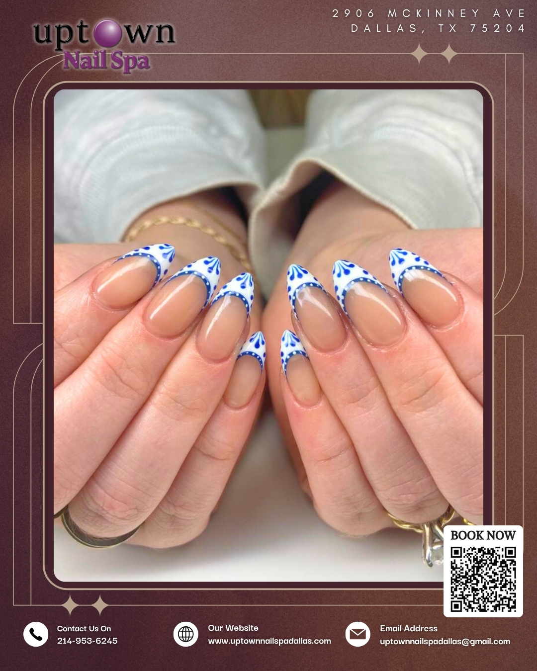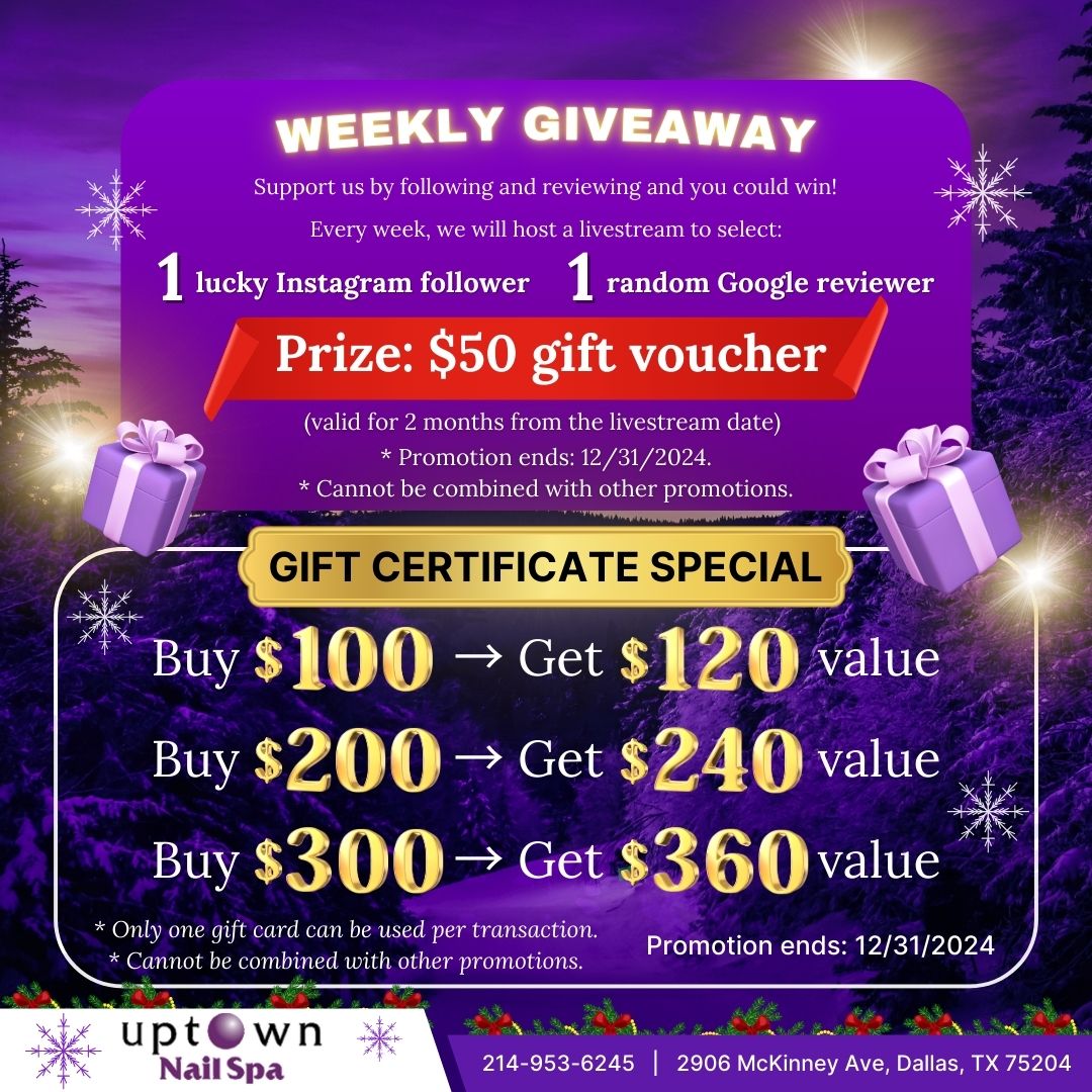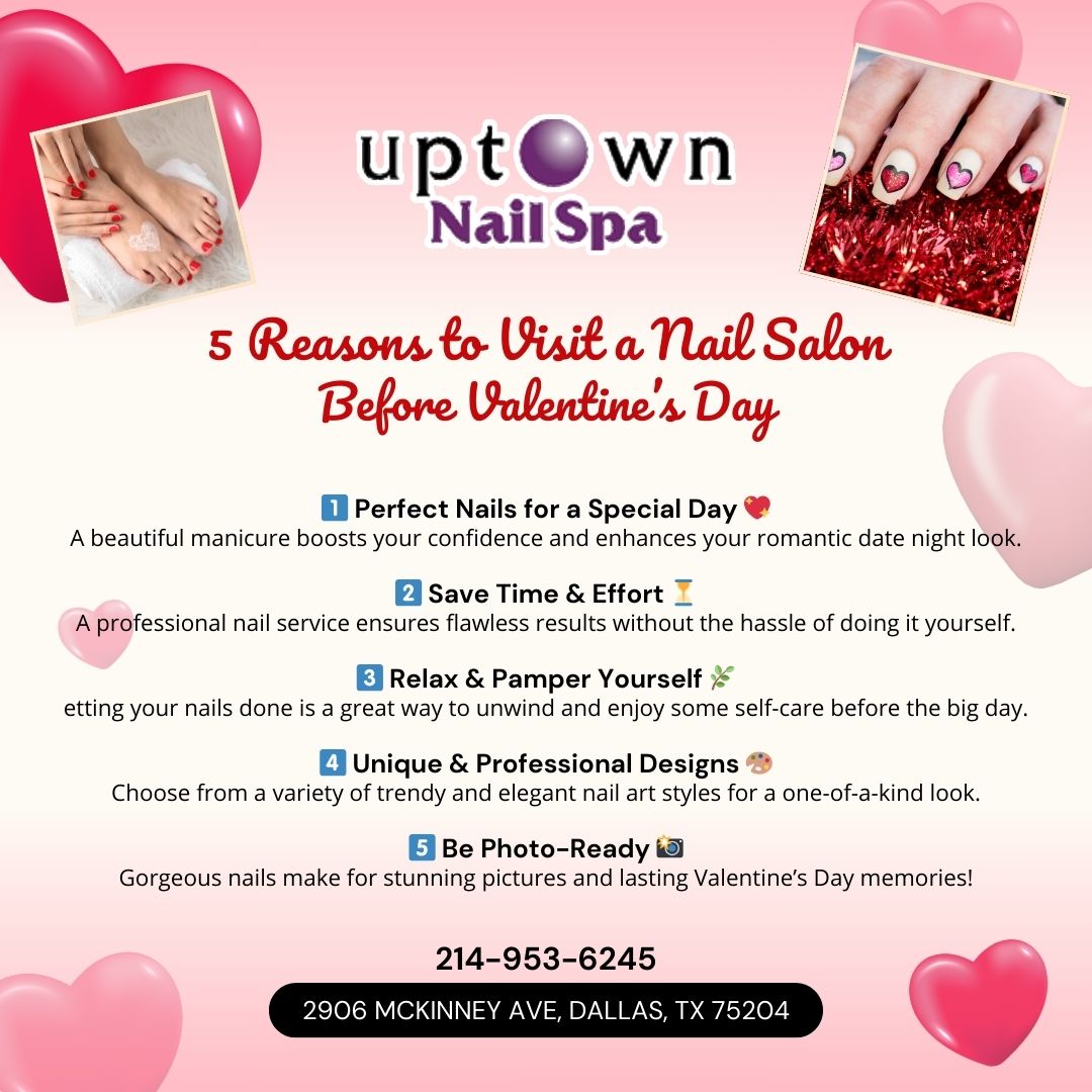 Located at 2906 McKinney Ave, Dallas, TX 75204, Uptown Nail Spa is the chic, modern oasis you’ve been searching for. Our luxurious two-level spa, situated in the vibrant Uptown area, is perfect for tourists and travelers looking to unwind and indulge in top-notch nail design services. With highly skilled technicians, seasonal and holiday-themed nail art, and a prime location near bars, clubs, and the airport, we promise a memorable and stylish experience. Come for the nails, stay for the vibe – Uptown Nail Spa is your go-to destination for beauty and relaxation!