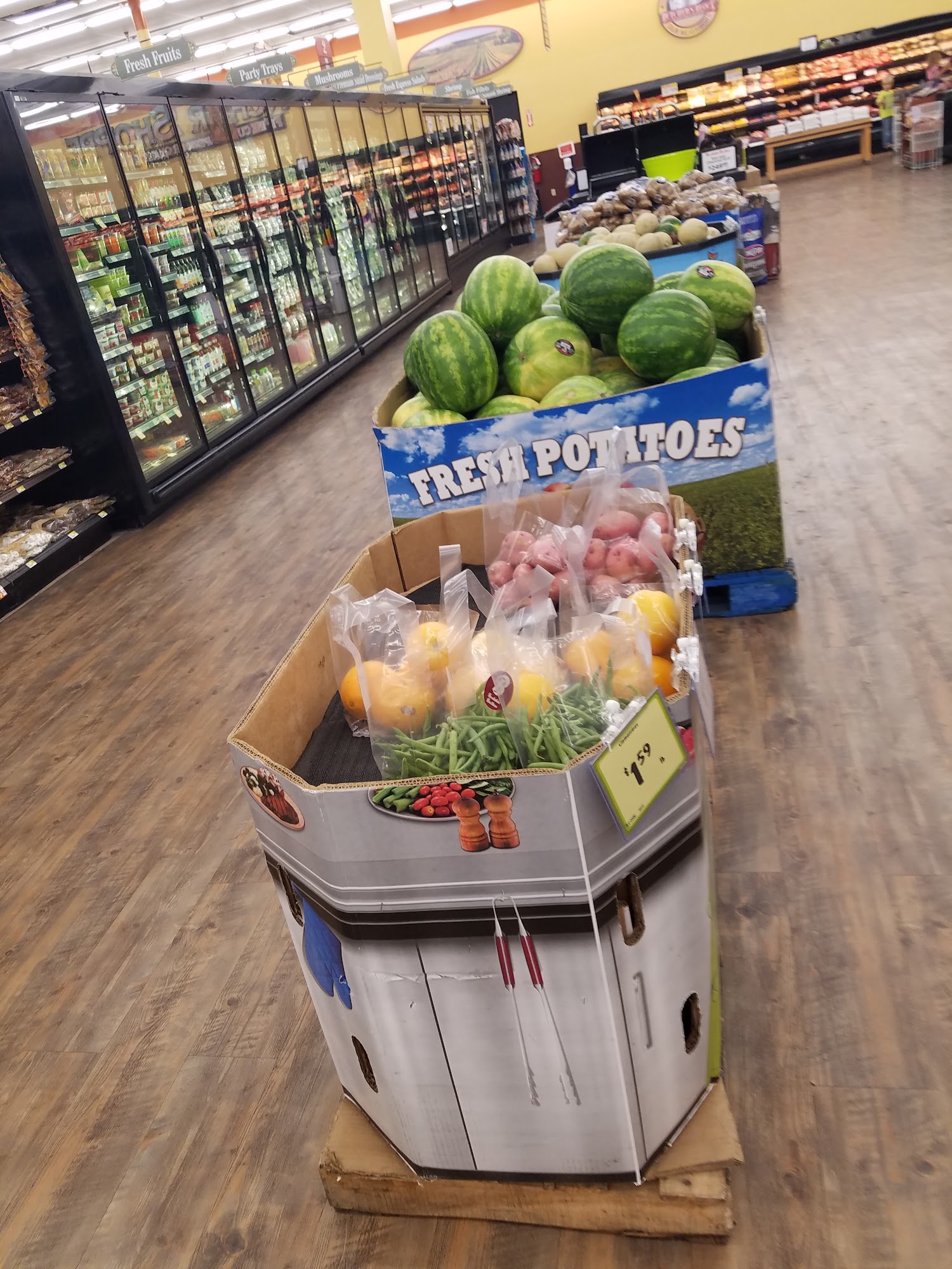 Small town grocery store but has pretty much all you could need and if you shop the sales you get pretty good deals.