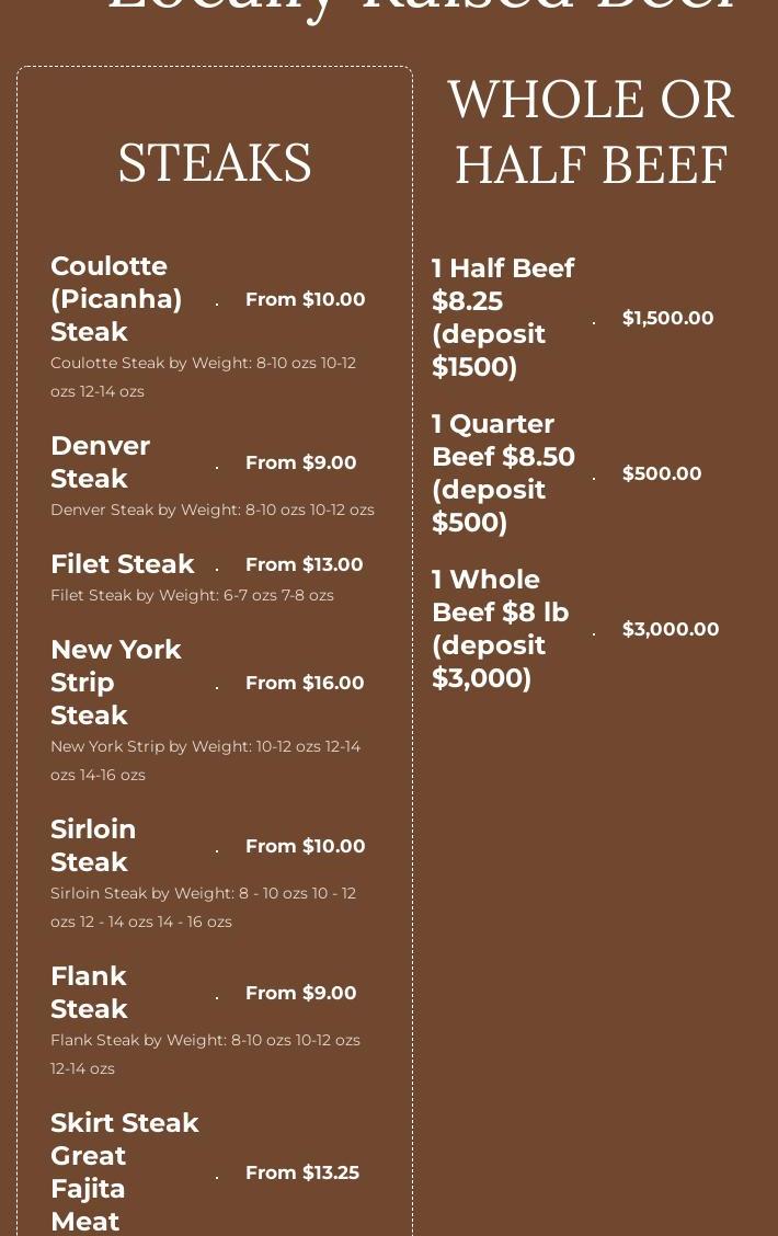 Their meat is so good! Prices are awesome! Quality beef and worth it!
