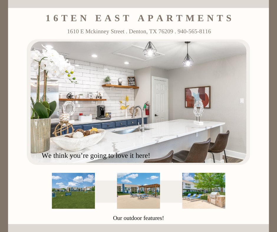 16Ten East offers exceptional apartment home living in the heart of Denton, Texas. This community is conveniently located near Historic Downtown Denton, providing easy access to exquisite culinary choices, UNT and TWU campus life, shopping, and recreation. The friendly neighborhoods and flourishing park atmosphere make 16Ten East the perfect place to call home. The leasing team at 16Ten East has been praised for their patience, helpfulness, and responsiveness during the application and move-in process. Residents have expressed gratitude for the team's willingness to work with them and provide the necessary assistance. The property itself is well-maintained, with residents highlighting the cleanliness of the community. The on-site management, led by Shara, has been commended for their professionalism, quick problem-solving, and friendly demeanor. Any maintenance requests are handled promptly, and the community is described as quiet, safe, and peaceful. Overall, 16Ten East offers a desirable living experience, with a convenient location, a helpful and attentive team, and a well-kept, comfortable environment for residents to enjoy.