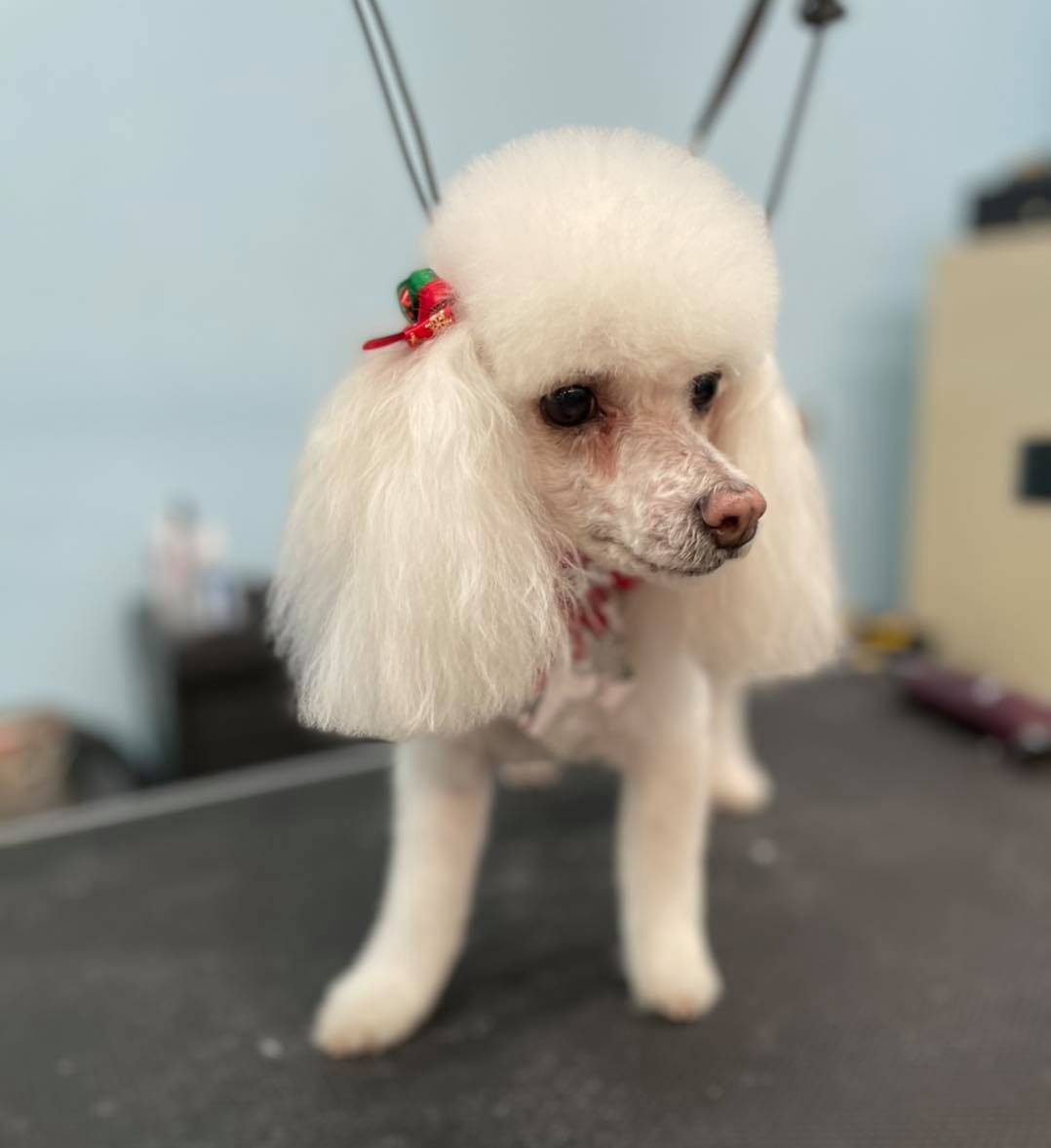 Absolutely stunning work! They did a wonderful job on my Poodle puppy’s first salon groom! She was thrilled with her new look and the bows and bandana were a lovely surprise, I highly recommend them. Everyone was polite and patient while I signed and asked questions.