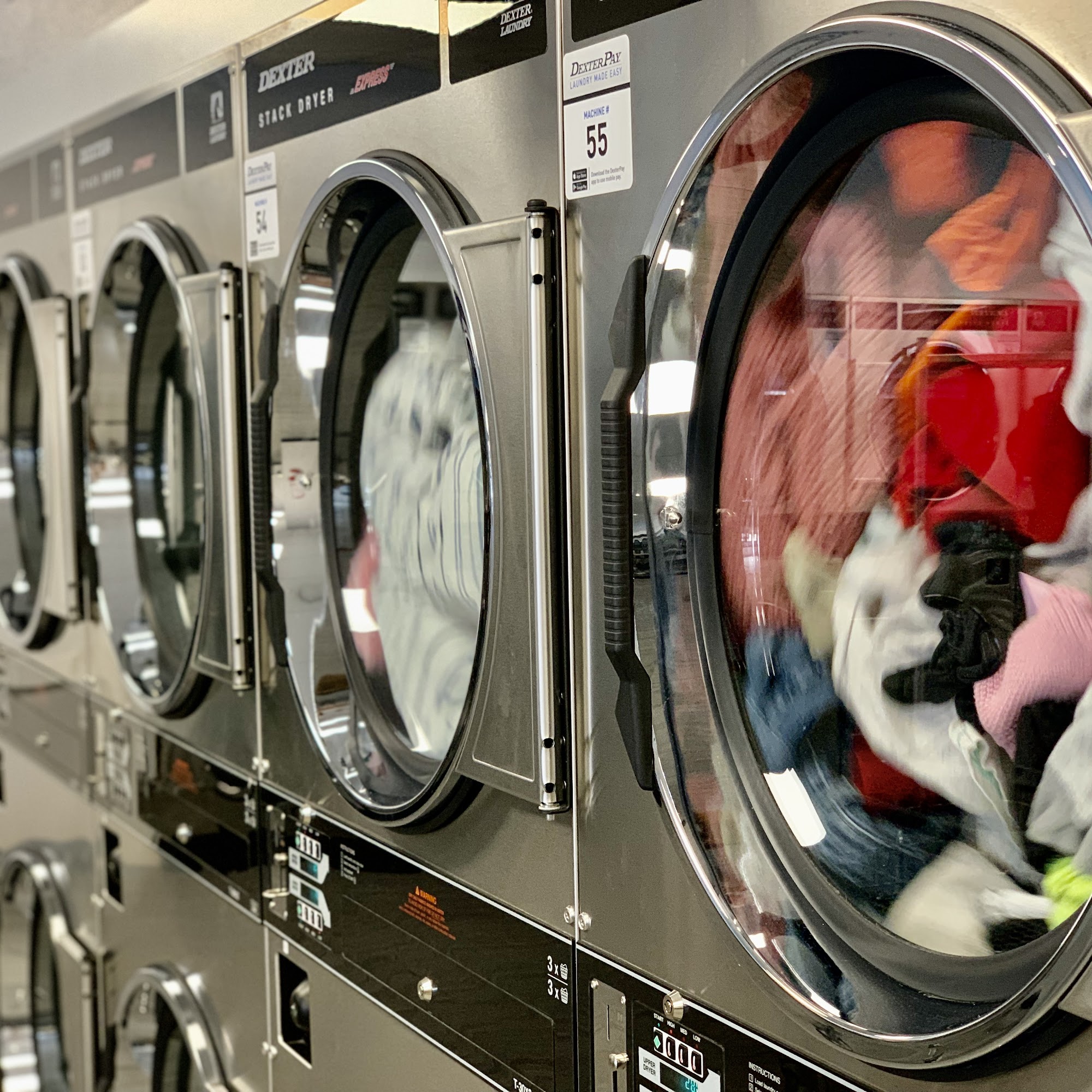 You can use your phone to pay if you download DexterPay which you find more information inside of this laundromat. They have a very cute little play house for kids to play or read. Always clean and Ana and everyone gives very good and helpful service :))