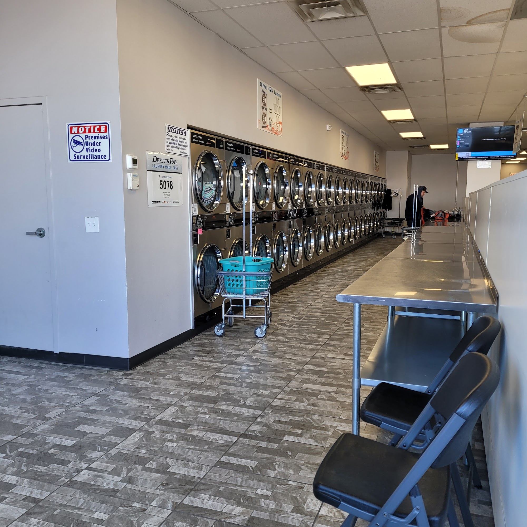 El Paso Coin Laundry is a highly regarded laundromat in El Paso, TX, known for its cleanliness and welcoming atmosphere. The facility is spacious, safe, and features 24-hour surveillance for added security. Customers appreciate the new machines, ample folding space, and helpful attendants who provide excellent service. The laundromat offers flexible payment options, including DexterPay, card, or cash, and has well-lit parking for convenience. Visitors can enjoy a comfortable environment with air conditioning, TVs, vending machines, and seating while they wait. Although there was a minor issue with dryer filters not being cleaned promptly, the overall staff, including attendants like Vero, Ana, and Paty, are described as professional, hardworking, attentive, and friendly. Customers highly recommend El Paso Coin Laundry for its reliable self-service options and the Wash Dry Fold Service. Open daily from 7 am to 9 pm, the laundromat is conveniently located near other businesses, making it a great choice for laundry needs.