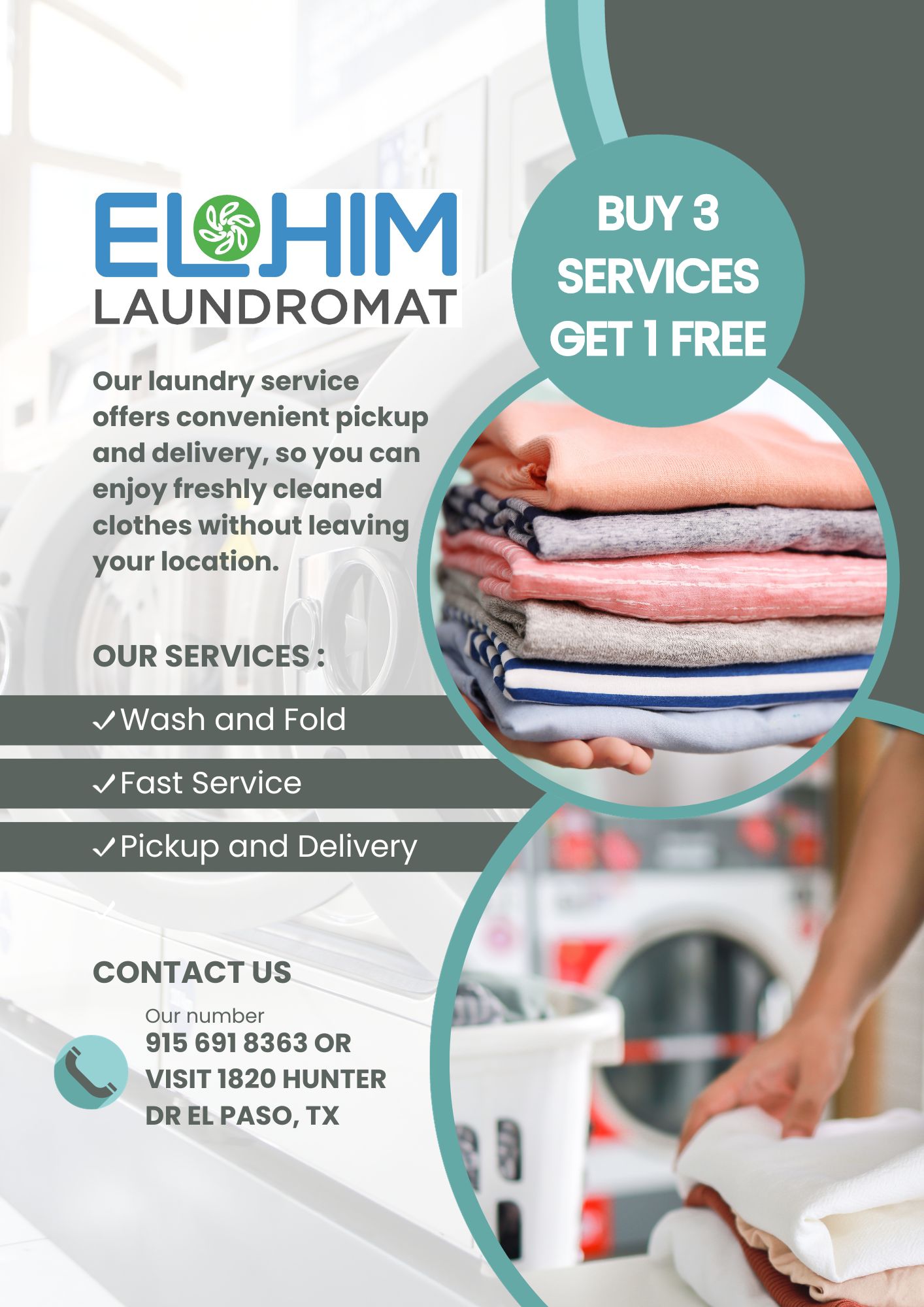 Elohim Laundromat is a clean and conveniently located business with affordable prices, charging $2.75 per load. The staff is very helpful, friendly, and honest, with several reviews highlighting their kindness and integrity—saving a wallet and returning a large sum of money. The manager, in particular, is praised for assisting customers with their wash and fold needs, even helping disabled seniors. The laundromat offers amenities like an ATM for cash and quick, reliable wash and fold services, including pickup and delivery for deployed soldiers. Overall, customers appreciate the good service, honesty, and caring staff that make Elohim Laundromat a trustworthy choice.