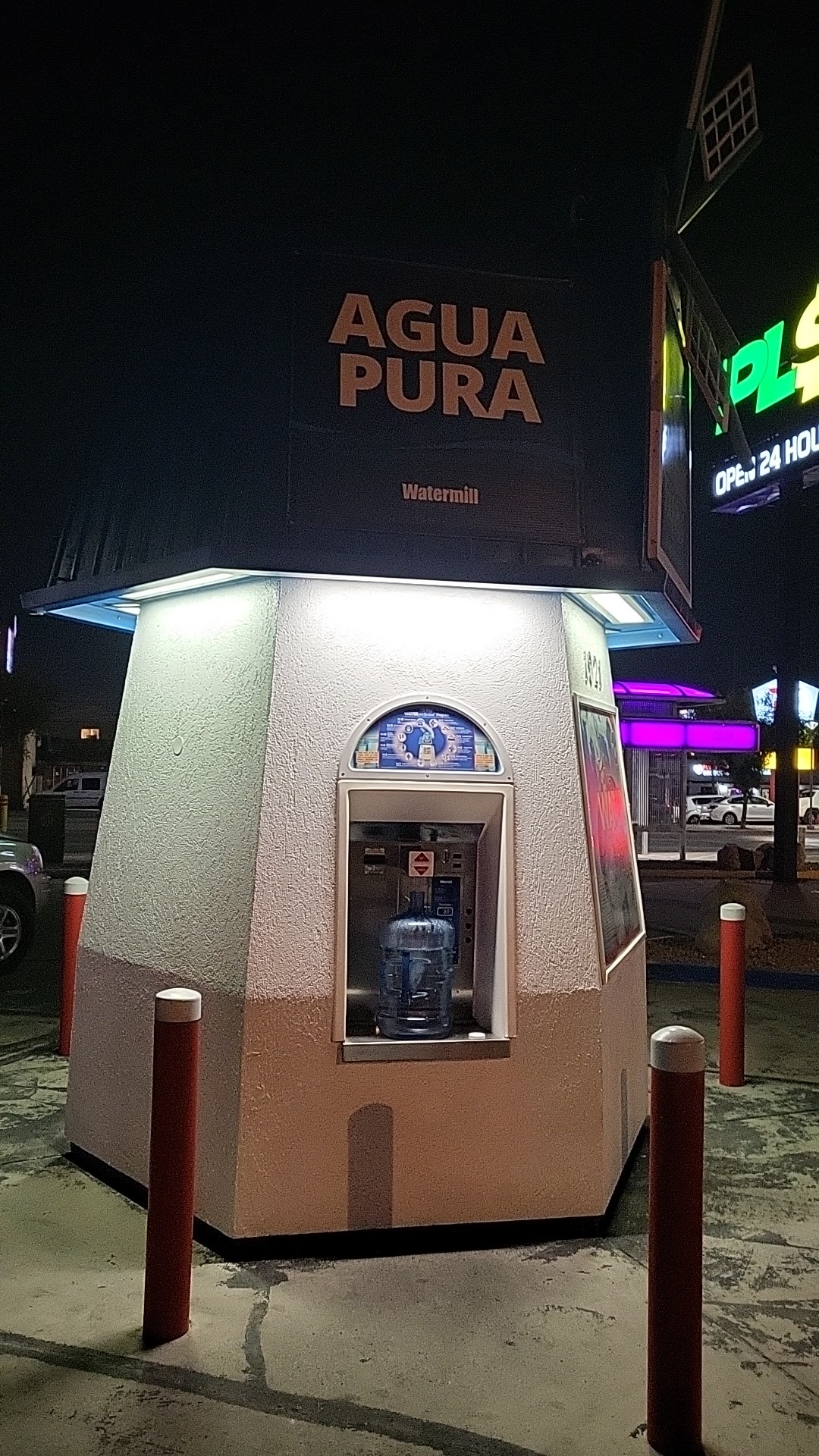 Easily accessible, fills the water bottles very quickly, but only takes cash and change, so be prepared! I used nickels and dimes because I wasn't ready but it worked out fine!