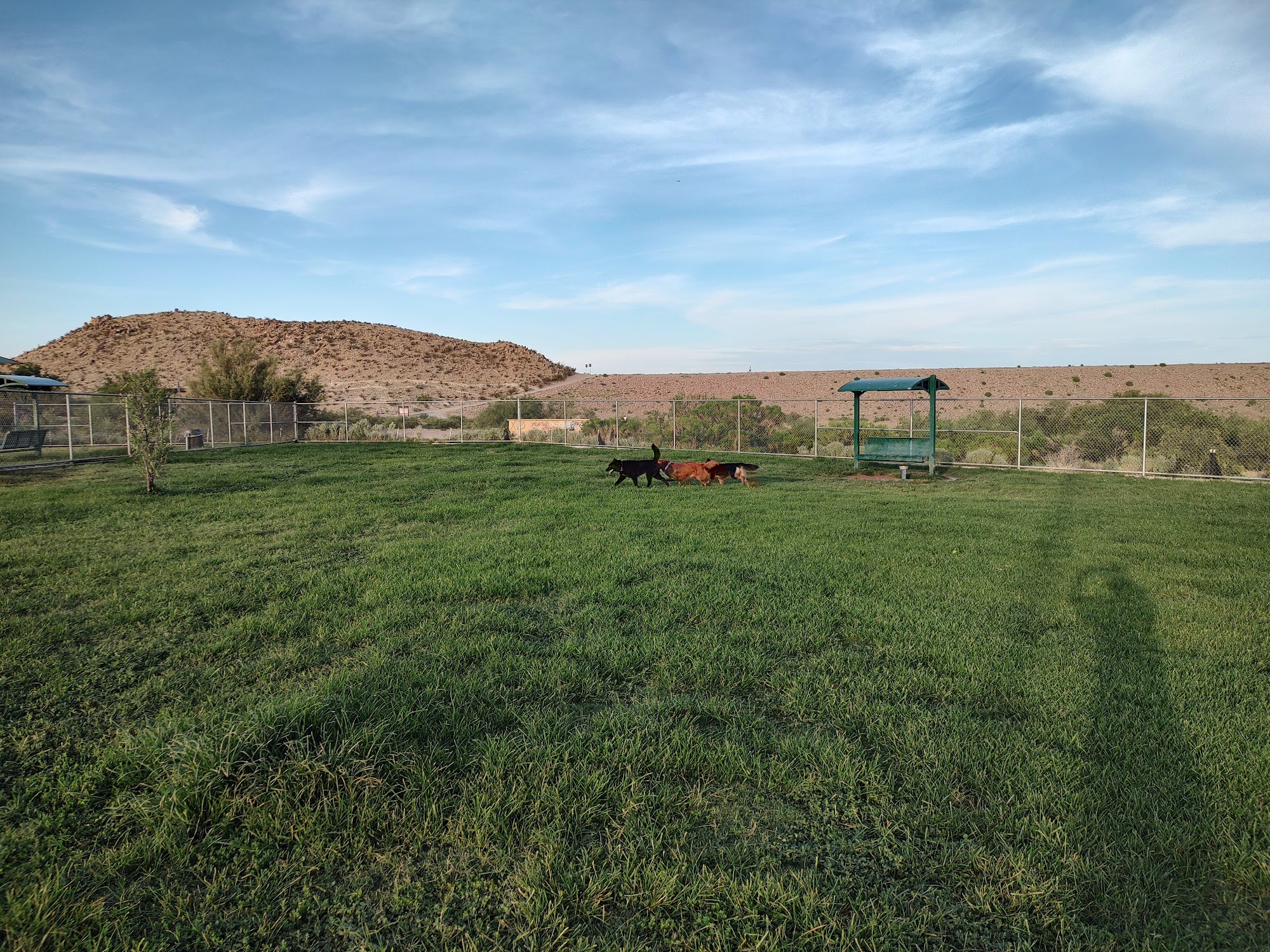 Its located in a quiet area of El Paso. It is located near a park and skate park so you have laughing kids around. It has great space for dogs to really run around.