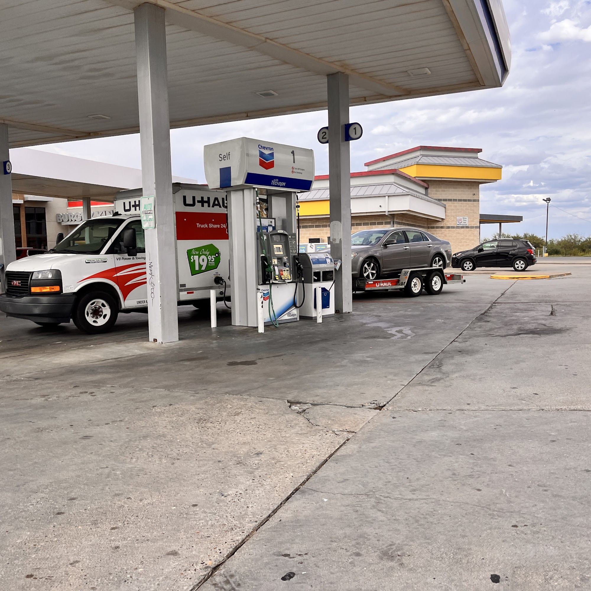 This Chevron offers some of the best fuel prices in the area. It has a large, quiet parking lot that is perfect for trucks and trailers, with room to turn around. The pumps are clean. There is a Burger King on site with good food and polite, fast service. The business shows good character, integrity, and cares about the customer, as demonstrated by excellent customer service. It is a great place to stop for fuel.