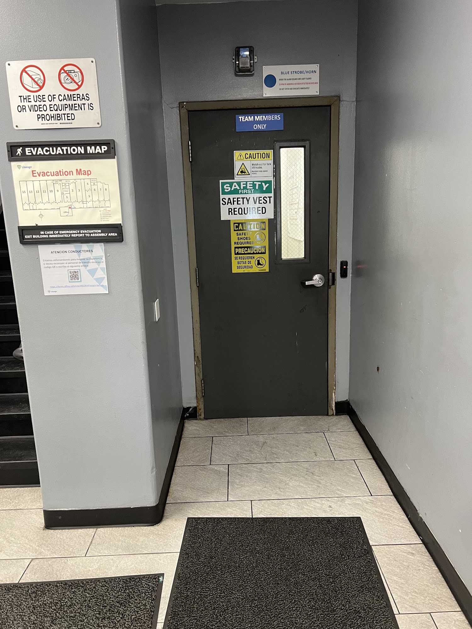 The guard shack fills out your gate pass for you. Take your license from there. The floor prefers load securement be removed prior to docking.