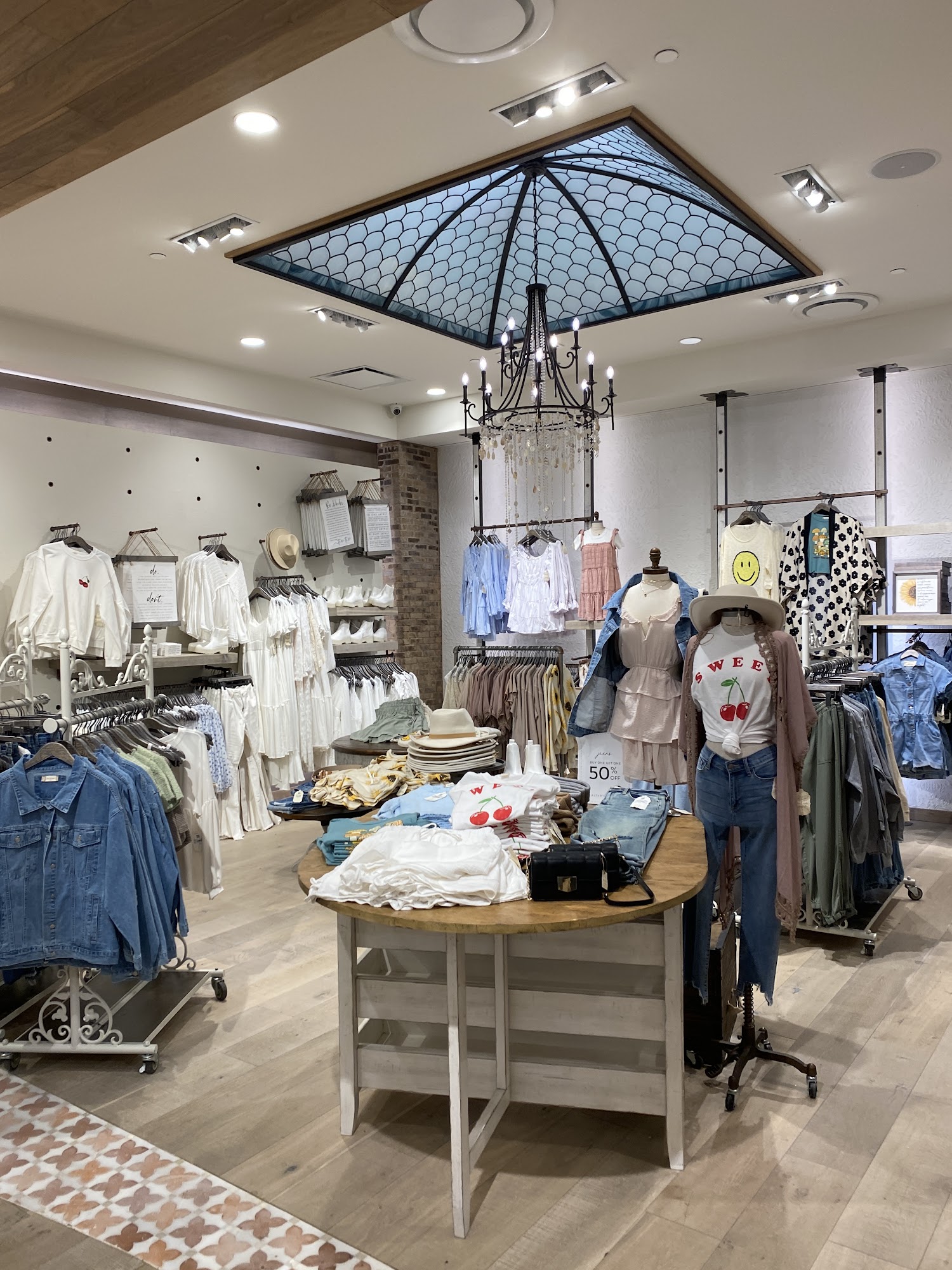 Great selection of on trend clothes with ample selection and well stocked sizes. Cute accessories that were on point. The busy time was handled well so the changing rooms and checkout line were quick to move. Would recommend for casual or special occasion options.