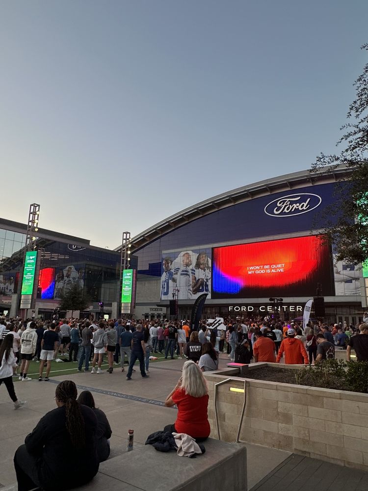 The Ford Center is a modern and well-ventilated venue located in Frisco, known for its cleanliness and spaciousness. It serves as a popular destination for various events, including high school graduations and football games. Visitors appreciate the contemporary design, easy access to amenities, and enjoyable views from the seating areas. The venue features an outdoor astro turf football field, providing a fun space for kids to play. Surrounding the Ford Center are numerous stores, eateries, and local bars, enhancing the overall experience. While some food prices can be on the higher side, the overall atmosphere and accessibility make it a must-visit location for community events and gatherings.