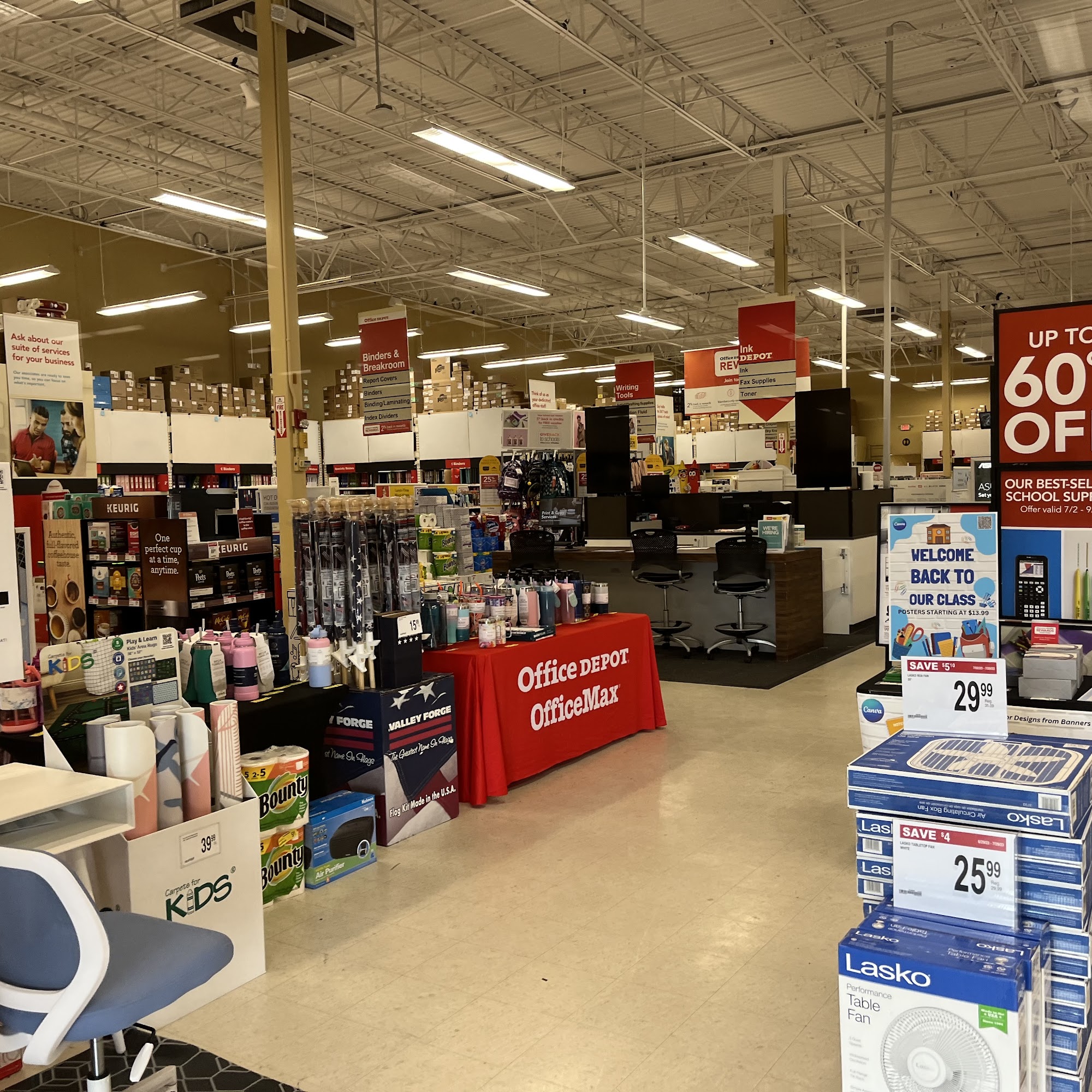 Office Depot is a go-to destination for all business and home office needs. The store now offers convenient curbside pickup for online and app orders. Customers can simply park in the designated "Online Order Pickup" spot and tap the "I'm Curbside" button to have an associate bring out their order. The store advisors at Office Depot are known for their exceptional customer service. Issac, David/Dave, Paul, and Michael have all been praised for going above and beyond to assist customers, whether it's with spiral binding, finding specific items, or providing expert advice on printing services. The employees are described as helpful, invested in the customer's success, and maintaining a great attitude. One customer even noted that this particular Office Depot location is a "refreshing return to what customer service should be," with the staff providing a "human connection" and remembering the customer's previous visit. Overall, the reviews highlight the store's wide range of products and services, as well as the knowledgeable and attentive staff who help customers save time and tackle their office needs.