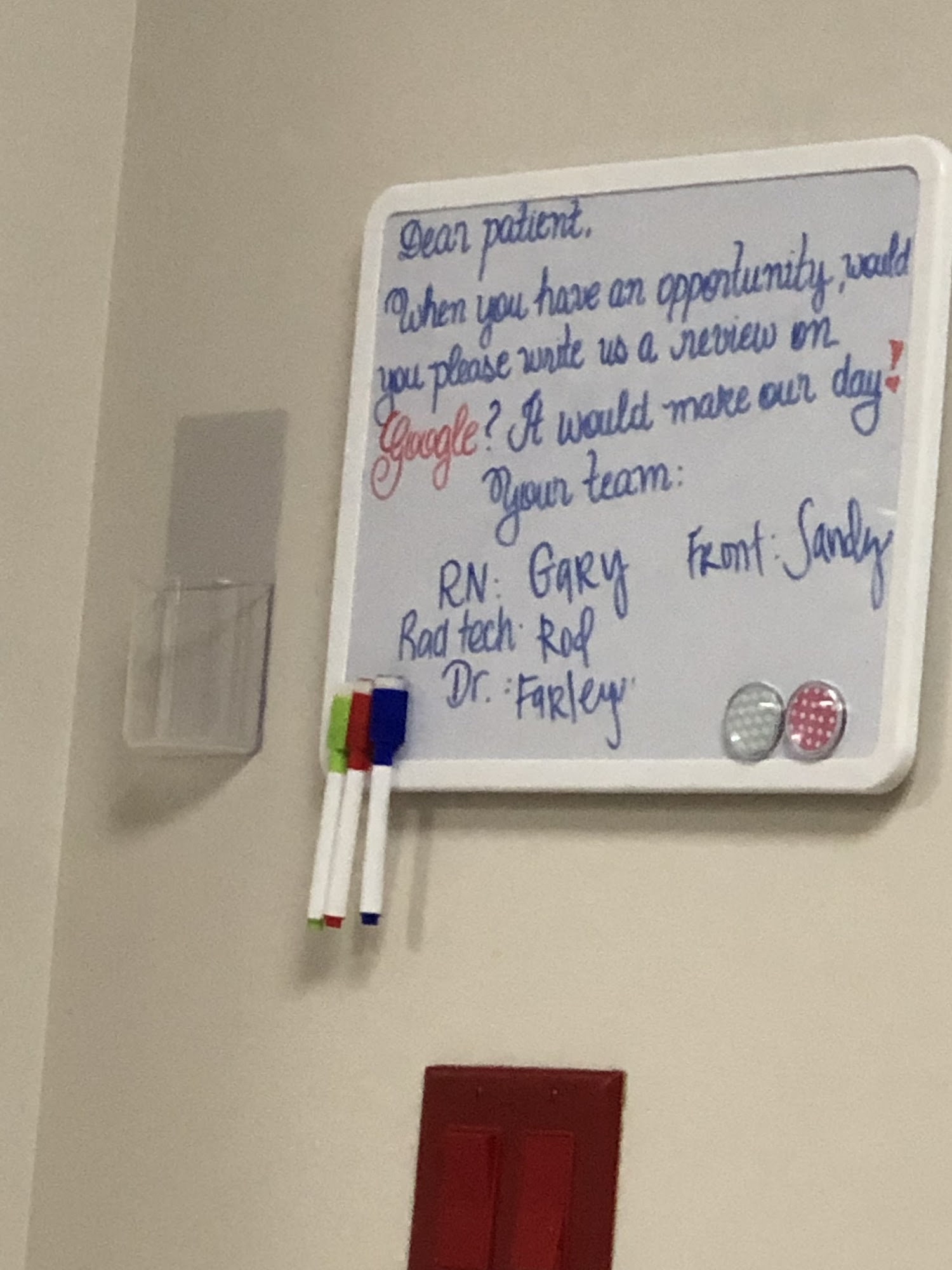 Great experience all the way, starting at front desk and finishing at the check out, My most sincere thanks to all staff Carrie, Danielle, Lynette, Lakisha and special thanks to Dr James Fambro. Definitely a 5 star reference.