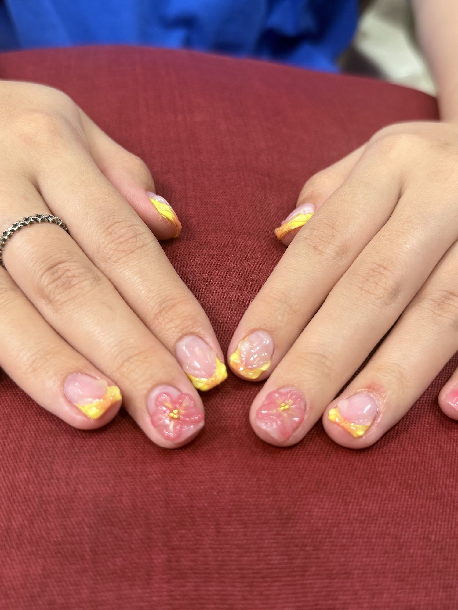 This place is pretty nice. Really good variety of colors. It’s a little expensive but that’s okay because they do pretty good. (The dents in my nails were already there but it makes the polish look smudged.)