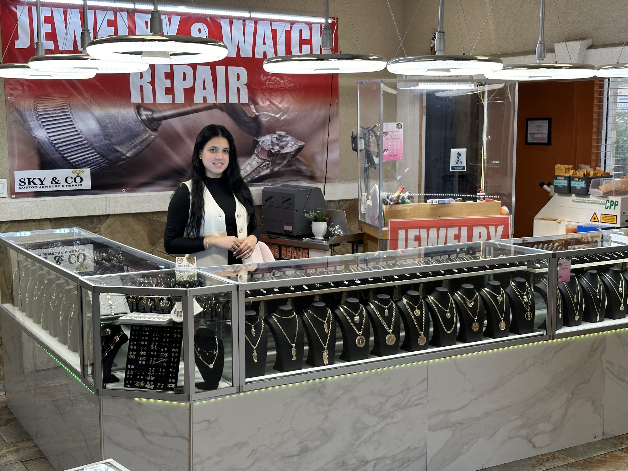 The team at Sky & Co were terrific; kind, friendly, and professional! The owner took wonderful care of the ring I brought in for sizing and even cleaned, replaced a stone, and fixed some prongs on my wedding set. (on the spot!) Very reasonable pricing and excellent work!