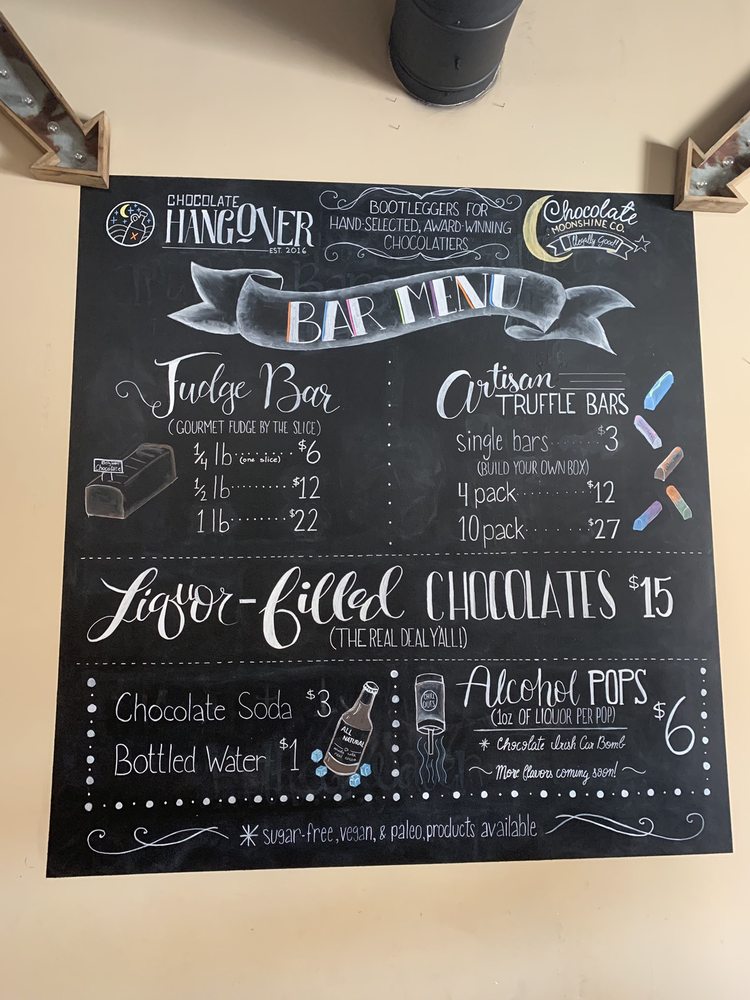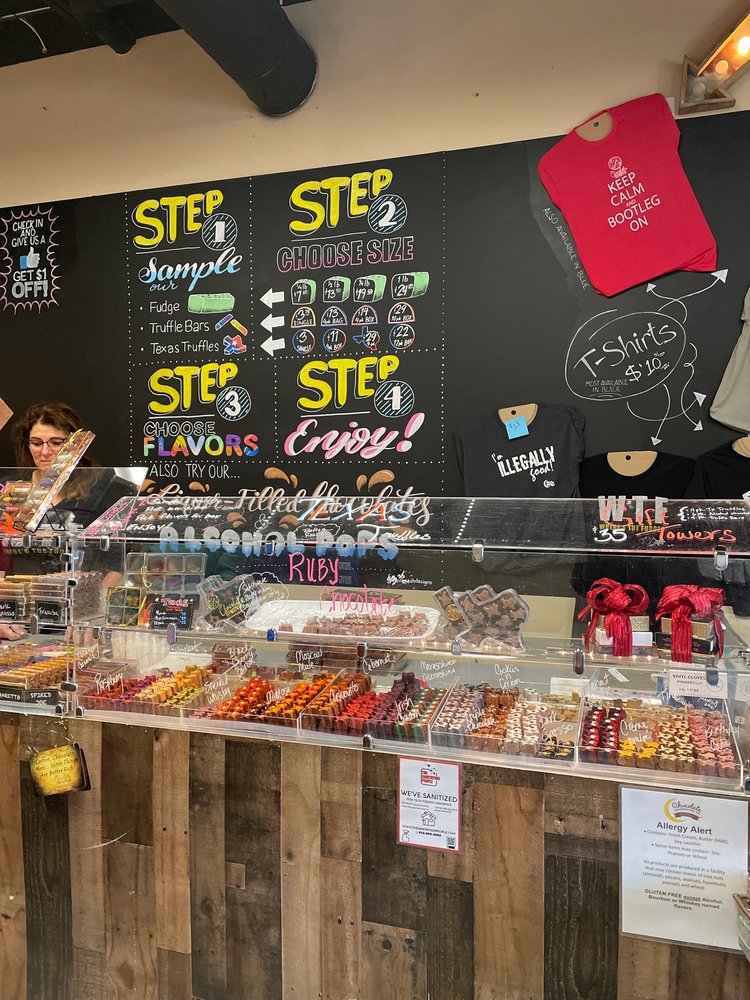 Chocolate Hangover is a heavenly chocolate shop located in Historic Downtown Grapevine. This cool shop offers an amazing and vast array of artisanal truffles, including Texas-shaped truffles with a huge selection of unique flavors. Guests can enjoy over 60 decadent truffle flavors and more than 100 varieties of velvety smooth fudge, made with 30% less sugar, which is so smooth and not overly sweet. The menu also features distinctive chocolates infused with liquor, delicious spirited push-up pops, and iced treats with a kick. Their Dubai White Chocolate bar is a standout, creating a symphony of flavors. The owner is clearly passionate, and the staff is friendly and kind, making visitors feel welcome. With its rotating menu and many items that melt in your mouth, it is a definitely worth trying place for a fun gift or a unique piece of chocolate, offering a little something for everyone.